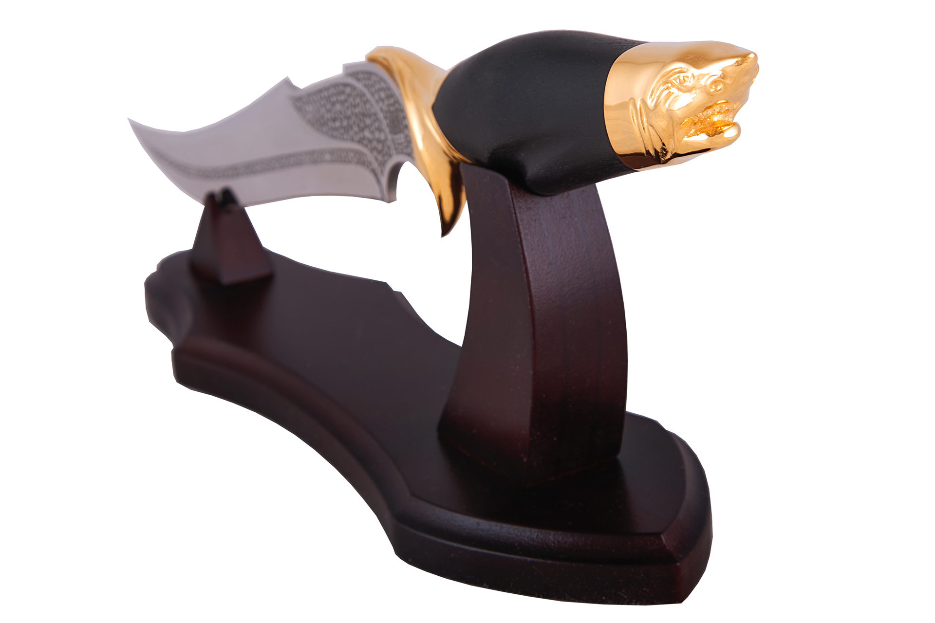 Холодное оружие может быть и определенно будет настоящим произведением искусства, если за дело берутся златоустовские мастера. «Акула» - это полностью авторский проект, который стал новинкой в ассортименте. Специалисты придерживались выбранной концепции во всем: рукоять выполнена в форме акулы, ее плавники и текстура кожи отражены в лезвии. Конечно, этот нож можно использовать по прямому назначению, ведь его сталь обладает отменными показателями качества!