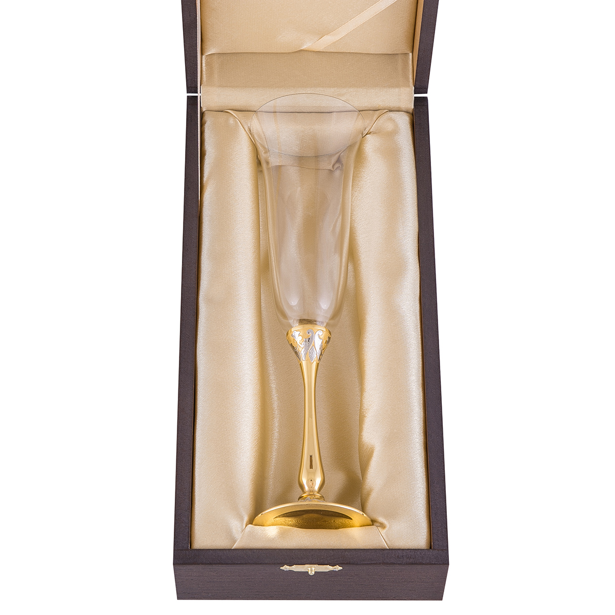 Любители игристого вина определенно остановят свое внимание на соответствующем обрамлении для него – бокалов «Графиня». Сочетание богемского стекла, латуни и золотого покрытия делает изделия легкими, практически воздушными. Особую изюминку бокалу добавляет его эксклюзивность – каждое изделие представляет собой ручную работу в которую мастера вкладывают весь свой талант!