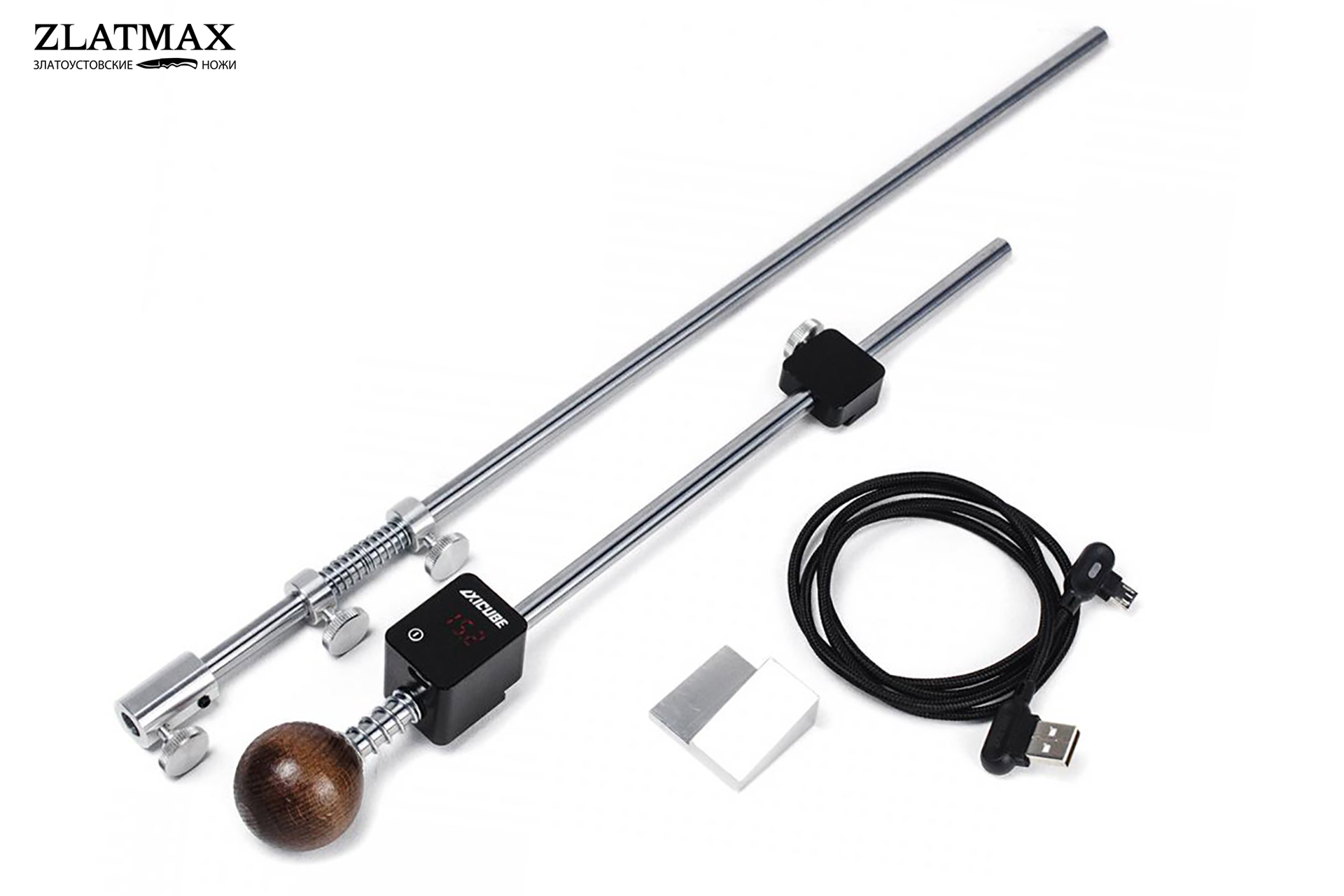 Это электронный угломер, встроенный в держатель абразива и показывающий выставленный угол заточки с точностью до 0.1°. Axicube-i помогает контролировать угол заточки в реальном времени и отследить любые изменения угла, например при смене абразива. На ярком дисплее легко читаются показания при любом освещении. Угломер размещен в прочном корпусе из авиационного алюминия и устойчив к вибрациям.