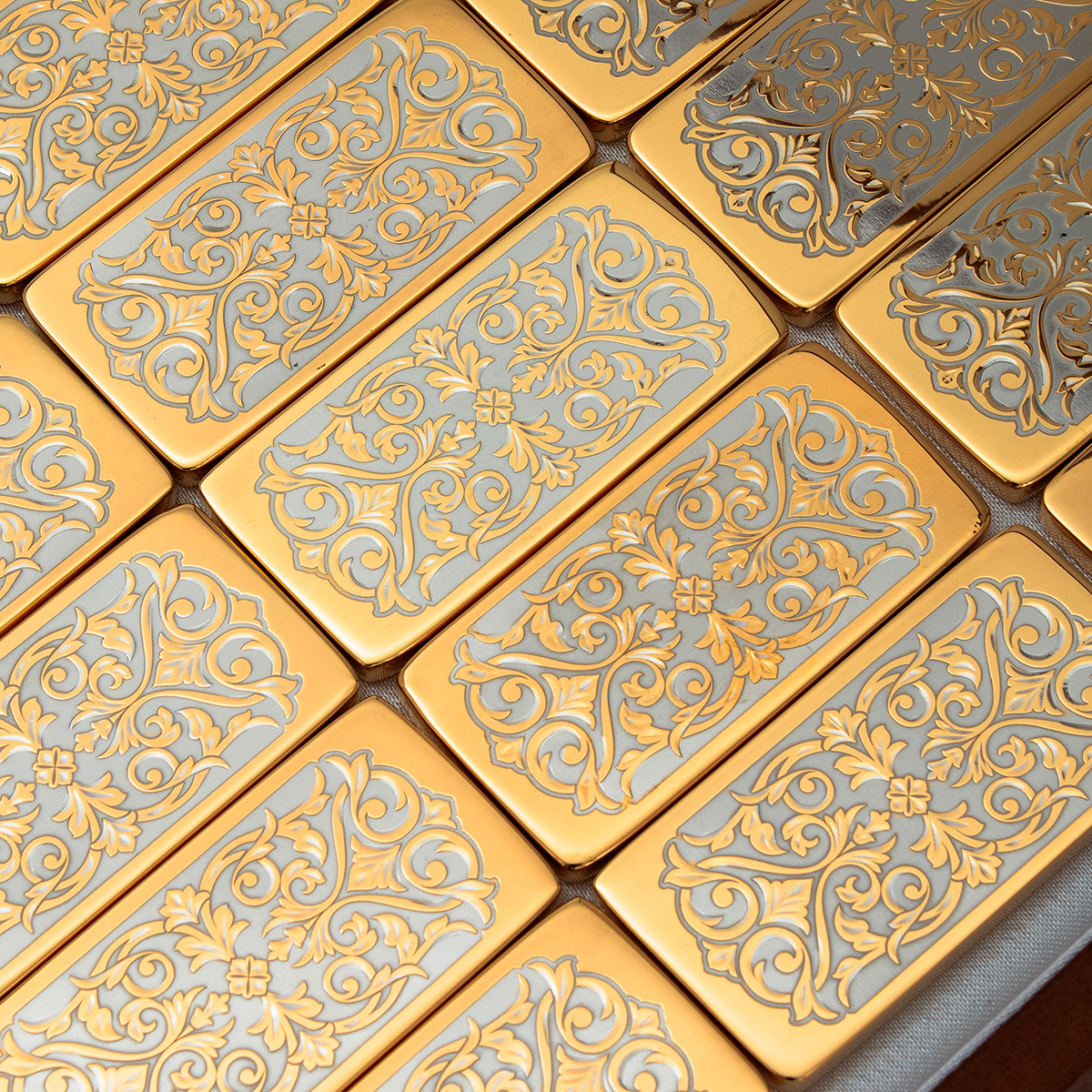 Техника исполнения: токарные и слесарные работы, рисовка кистью на металле, многоступенчатая гравировка иглой по лаку, травление, ручная подрезка, полировка.