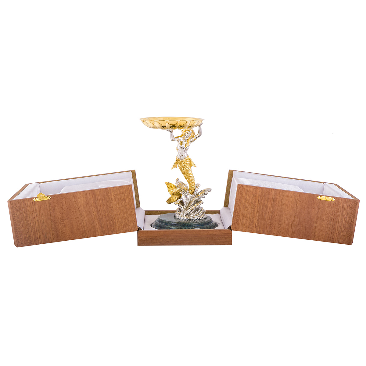 Такой деликатес, как икру, нужно уметь правильно подавать. Помочь в этом непростом вопросе призвана икорница «Русалка». На каменной подставке в полный рост размещается девушка-русалка, держащая над головой тарель в форме ракушки. Такая необычная композиция наверняка не оставит равнодушными никого из гостей и подчеркнет значимость подаваемого на стол блюда.