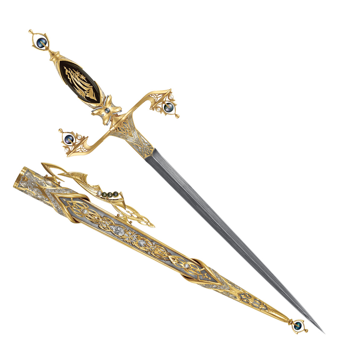 В качестве основы для оружия была выбрана высокопрочная сталь, клинок и ножны украшены золотым и ник...