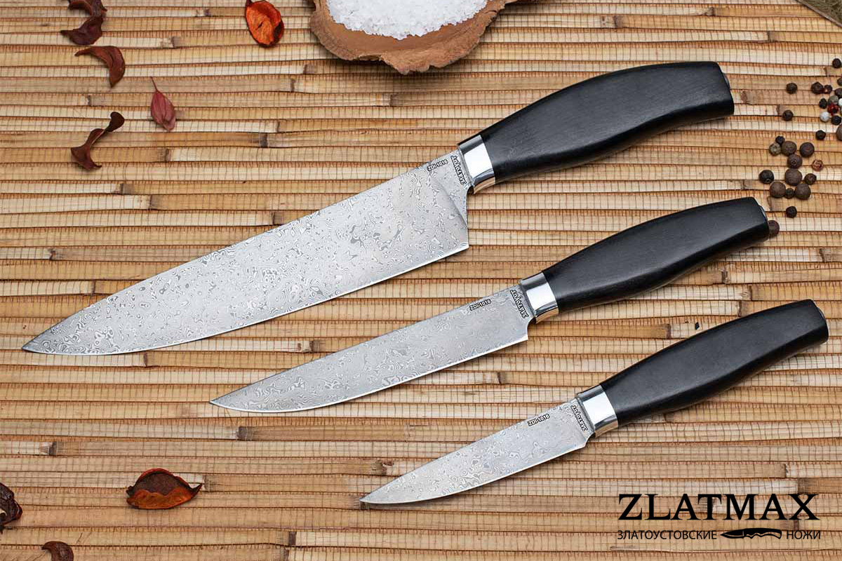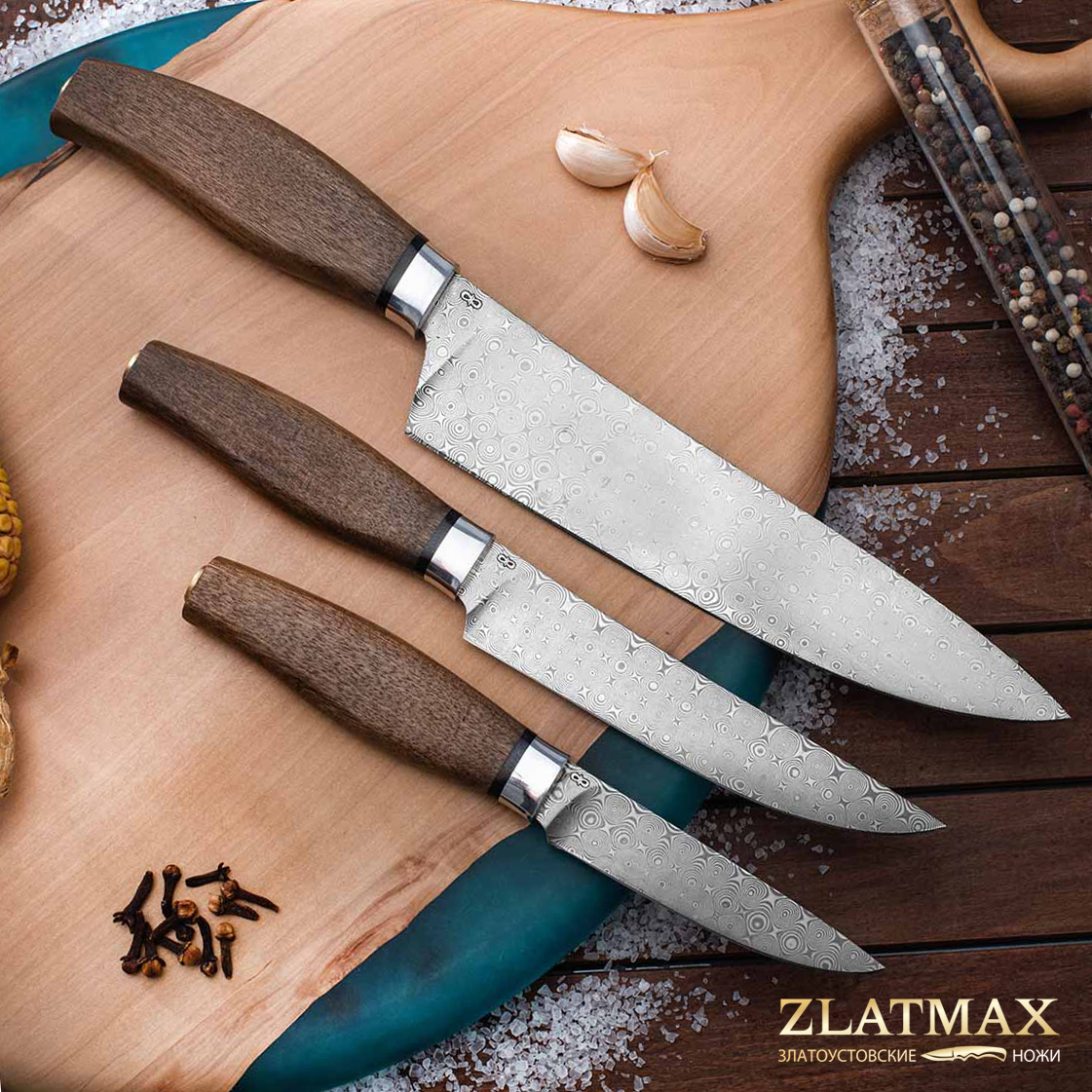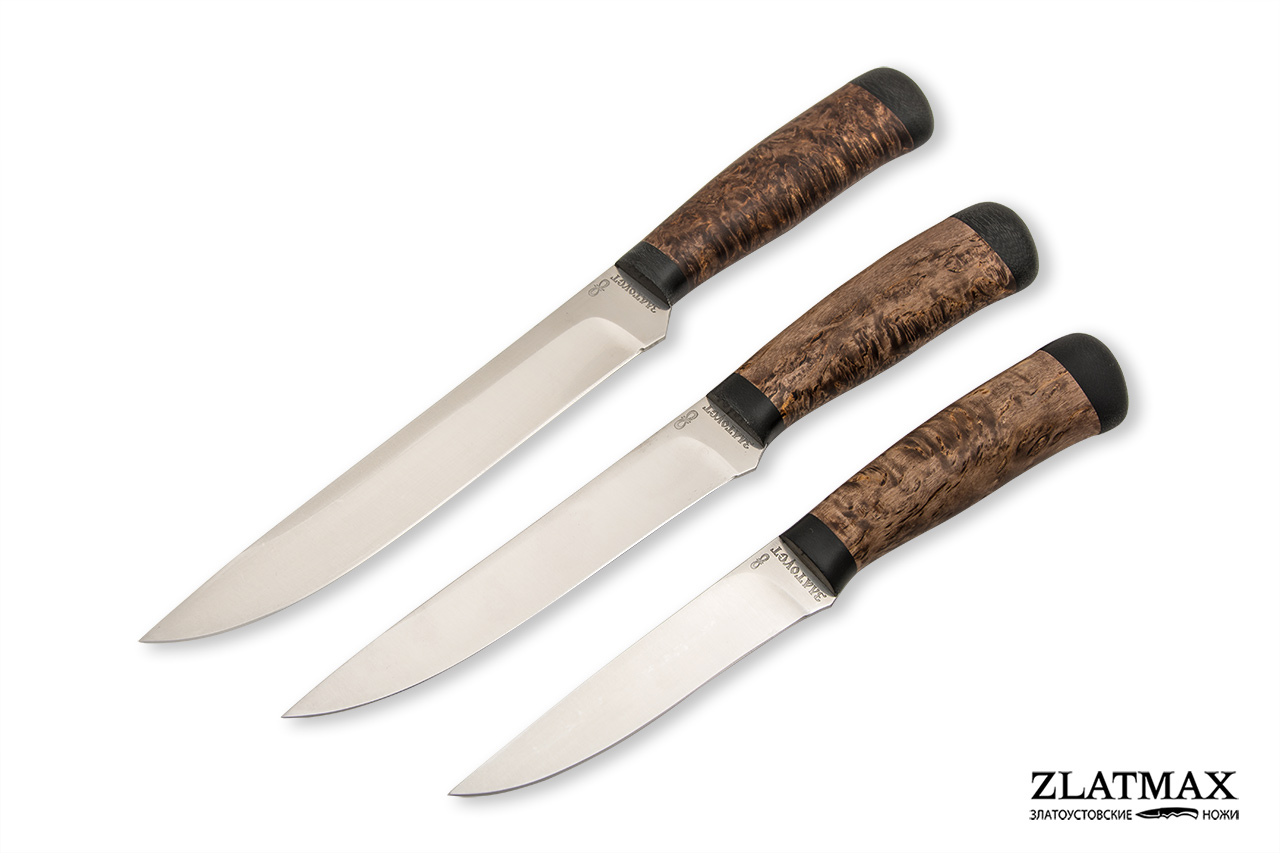 Набор кухонных ножей Кухонная тройка (AUS10, Накладки граб)Размеры кухонных ножейБольшой: Об...