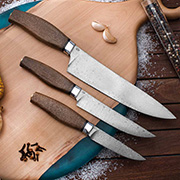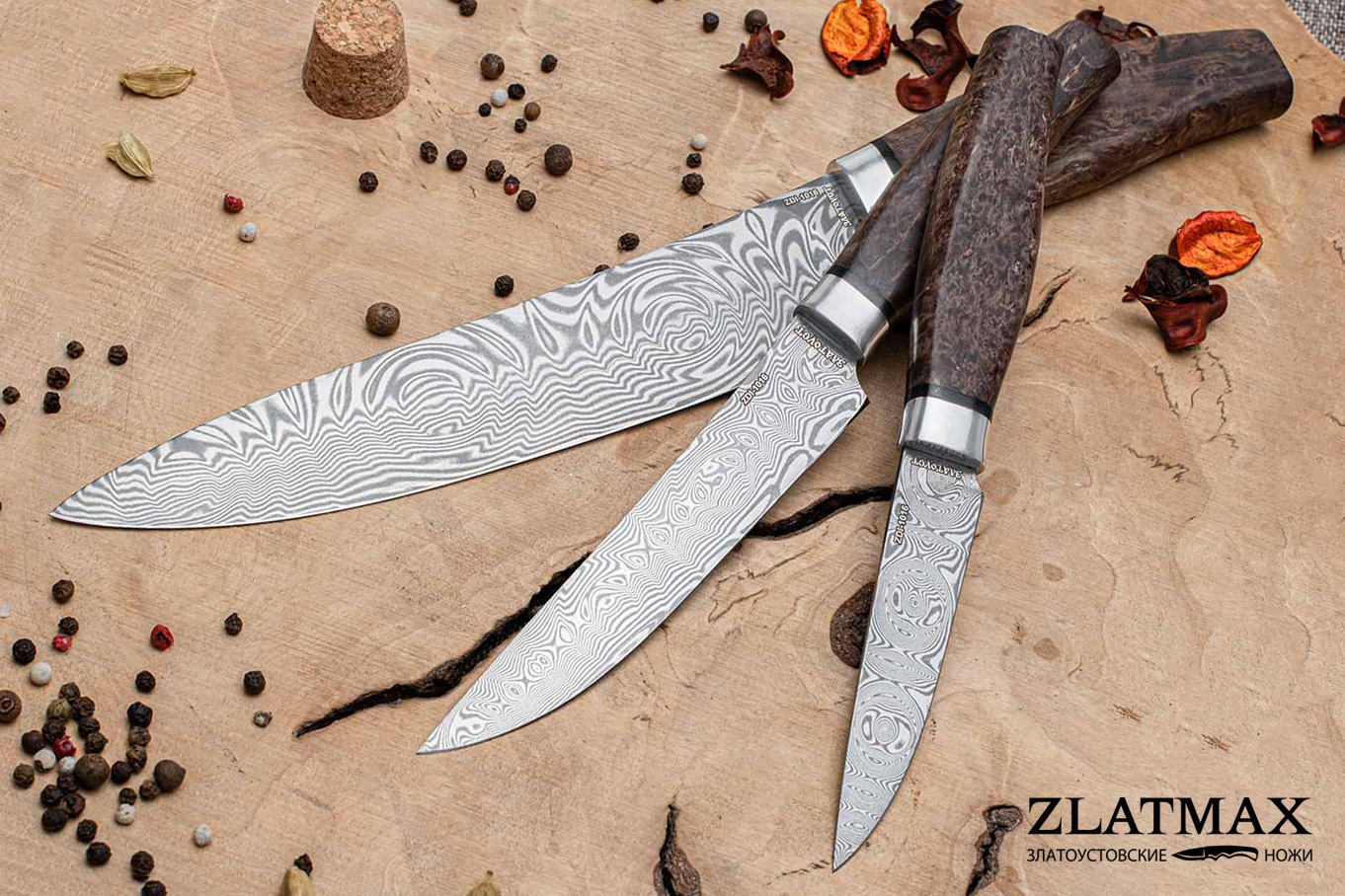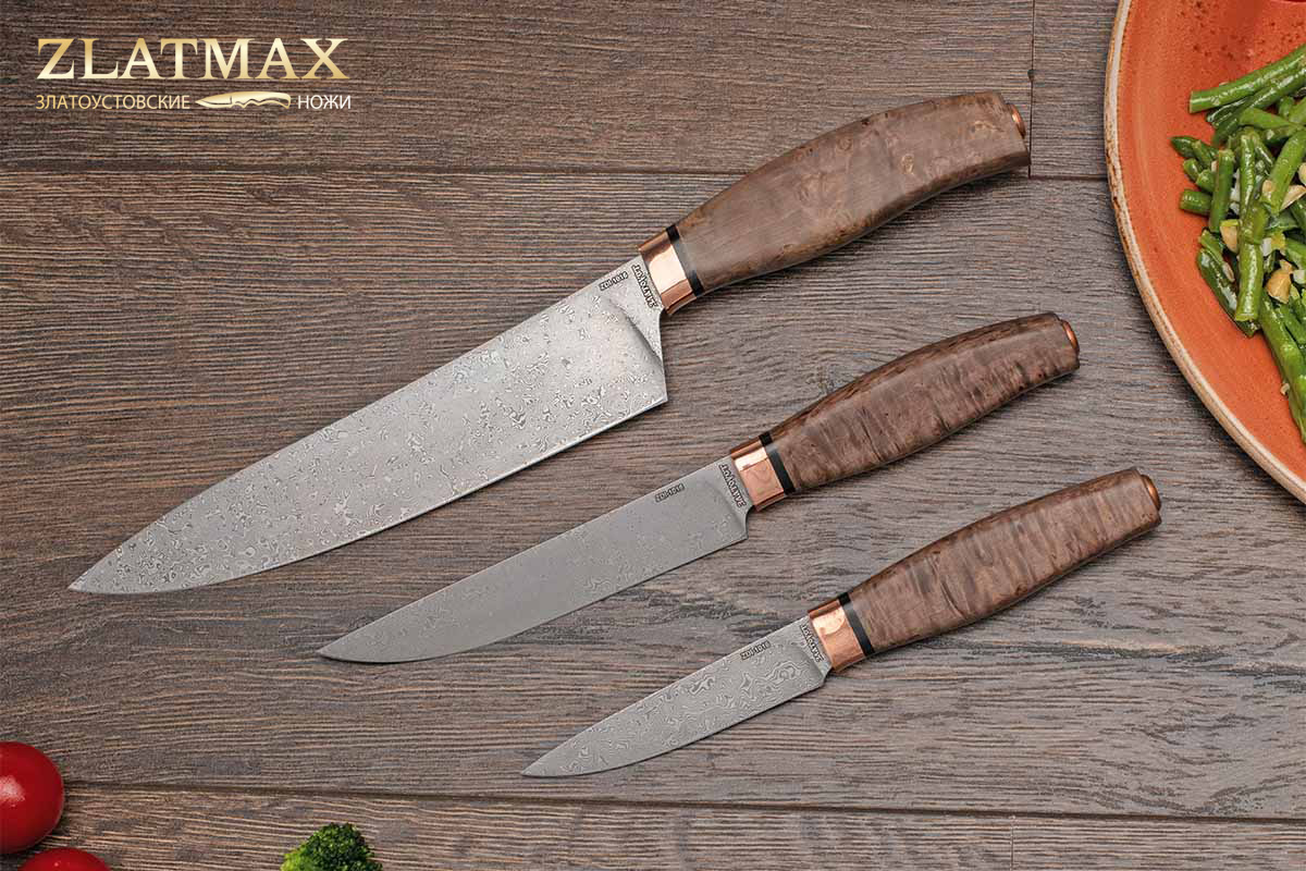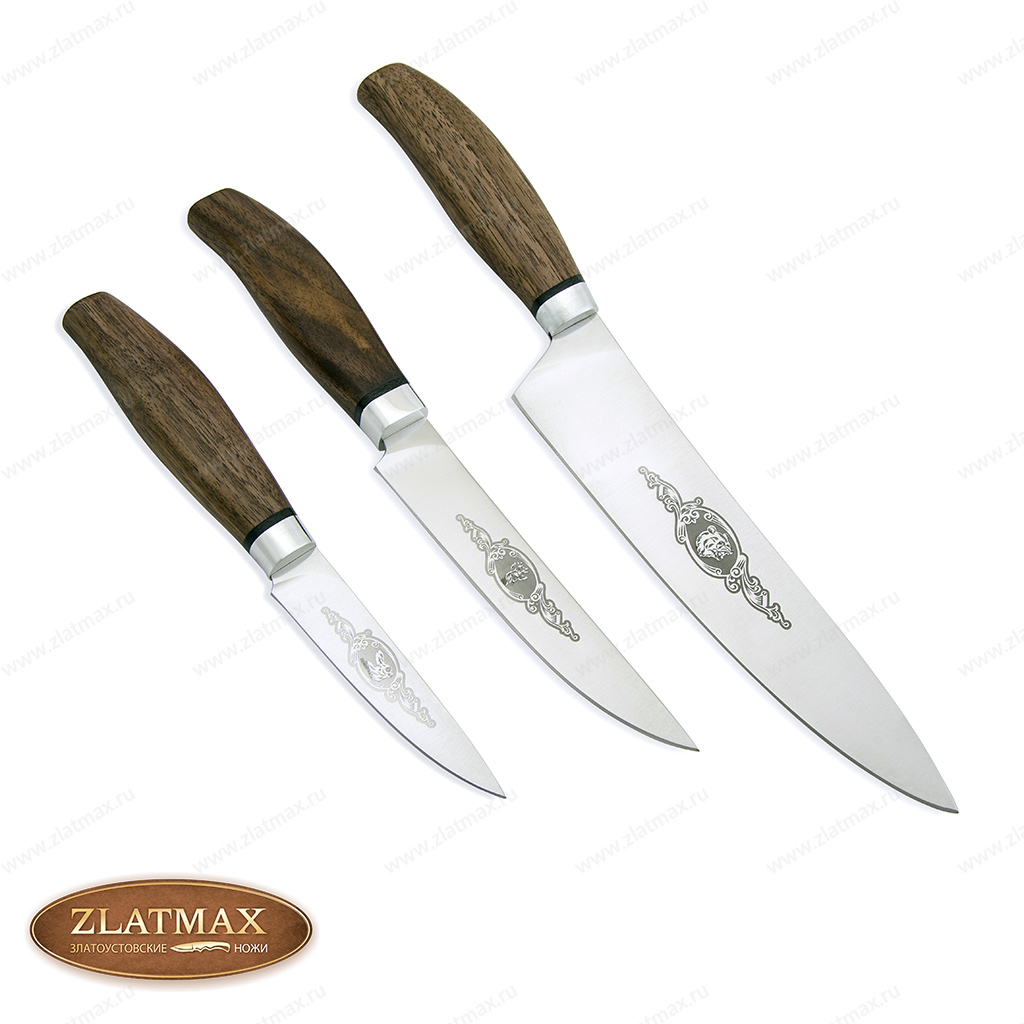 Набор кухонных ножей Кухонная тройка (AUS10, Накладки граб)Размеры кухонных ножейБольшой: Об...