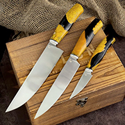 Кухонная тройка представлена тремя моделями: Шеф-нож, Нож Мясной, Нож Филейный, Нож Универсальный, Н...
