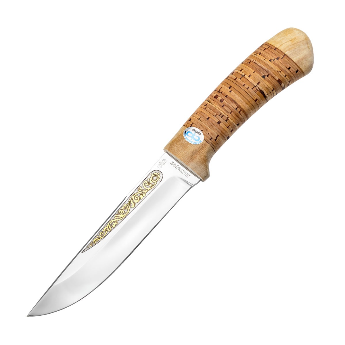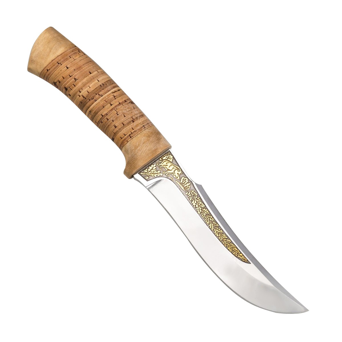 Материал:клинок из стали ЭИ-107;рукоять - кап березовый;тыльник, гарда - латунь;кожаные ножн...