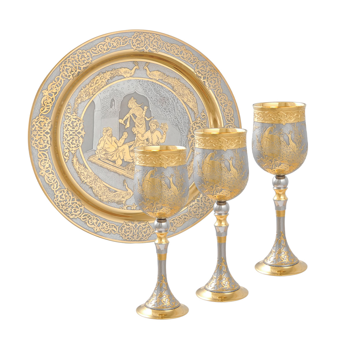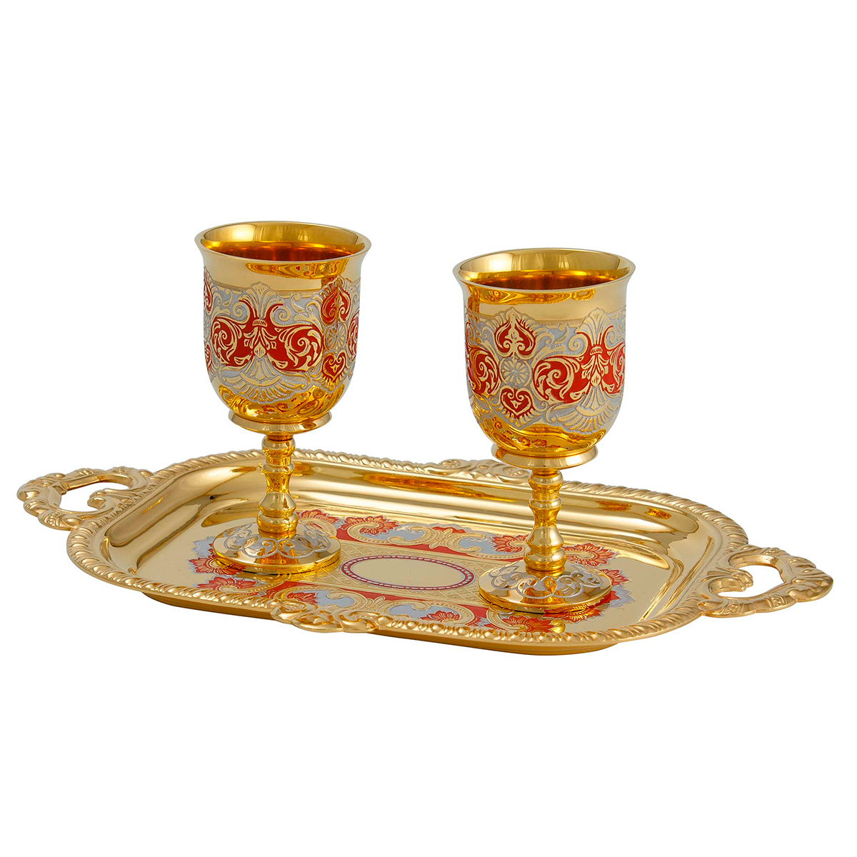 Набор для напитков "Праздник Граната" ( 2 бокала, поднос )Материал: латунь, эмаль, ювелирные кам...