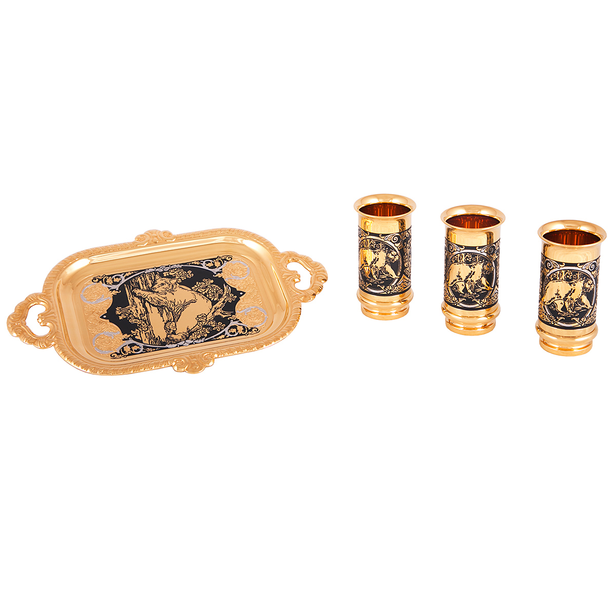 Набор водочный "Медведь" (3 стопки гильзы, поднос)Материал: латунь.Покрытие: золотом 999,9; ...