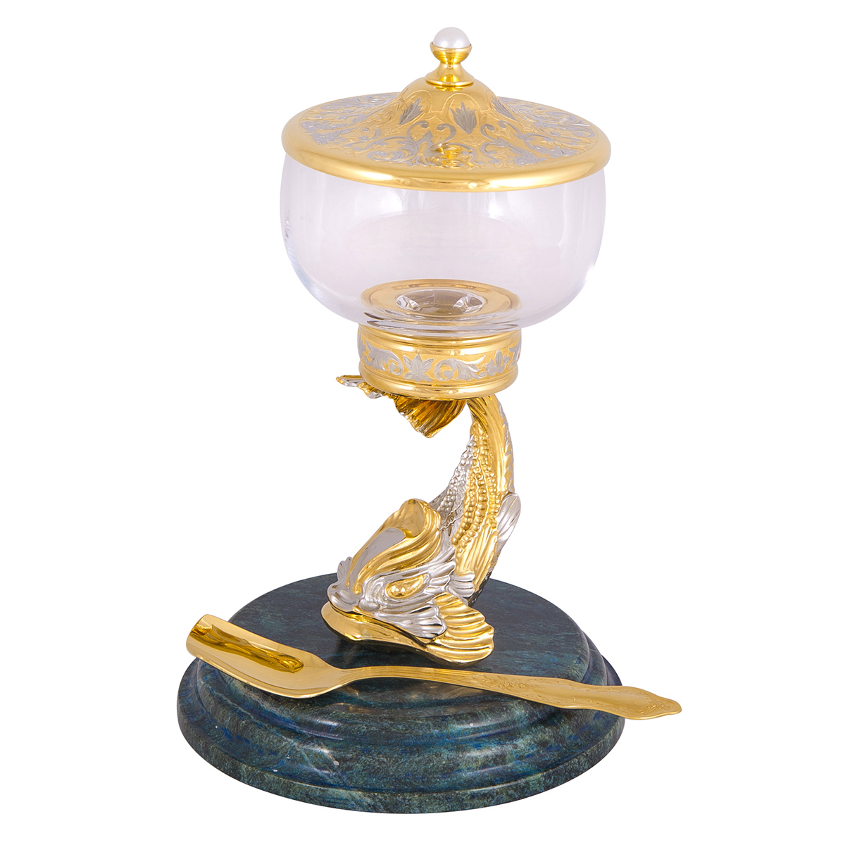 Материал: латунь, агат, хрусталь.Покрытие: золотом 999,9; никелем.Техника исполнения: художе...