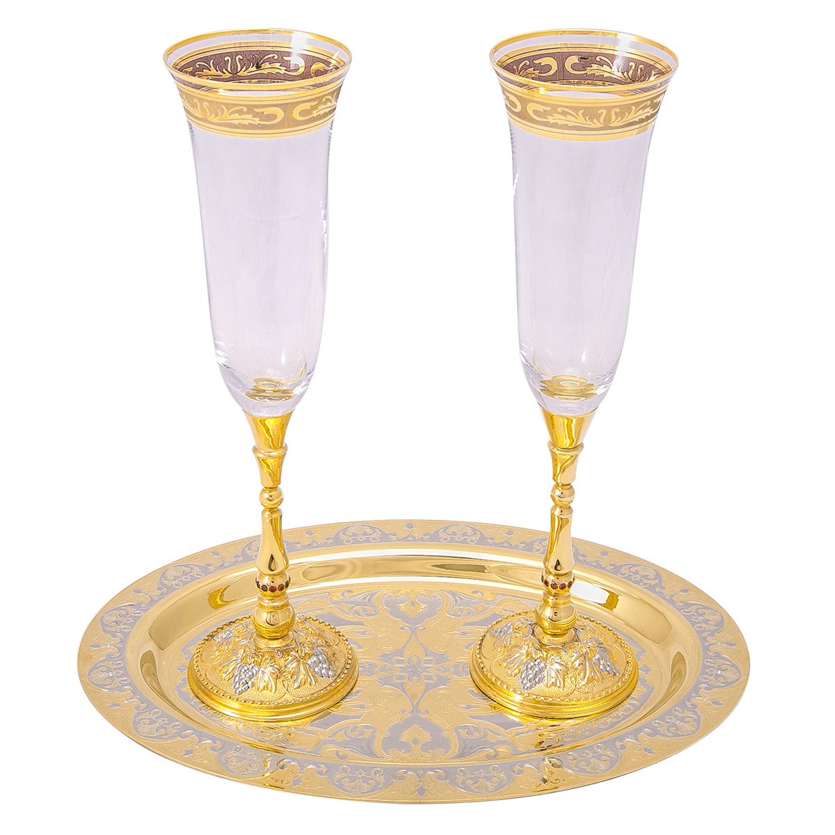 Набор для шампанского "Сладкая жизнь" ( тарель, 2 фужера )Материал: латунь, богемское стекло, фи...
