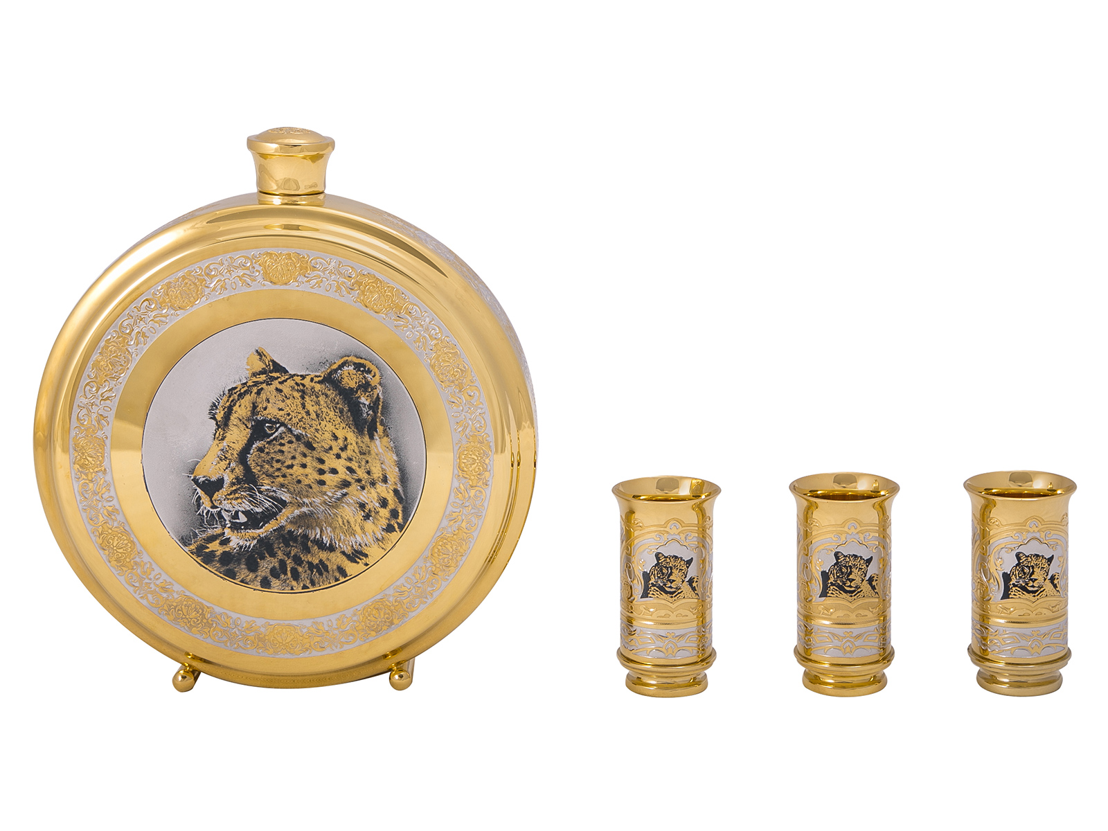Набор охотничий "Хищница" (фляга большая, 3 стопки)Материал: латунь.Покрытия: золотом 999,9;...