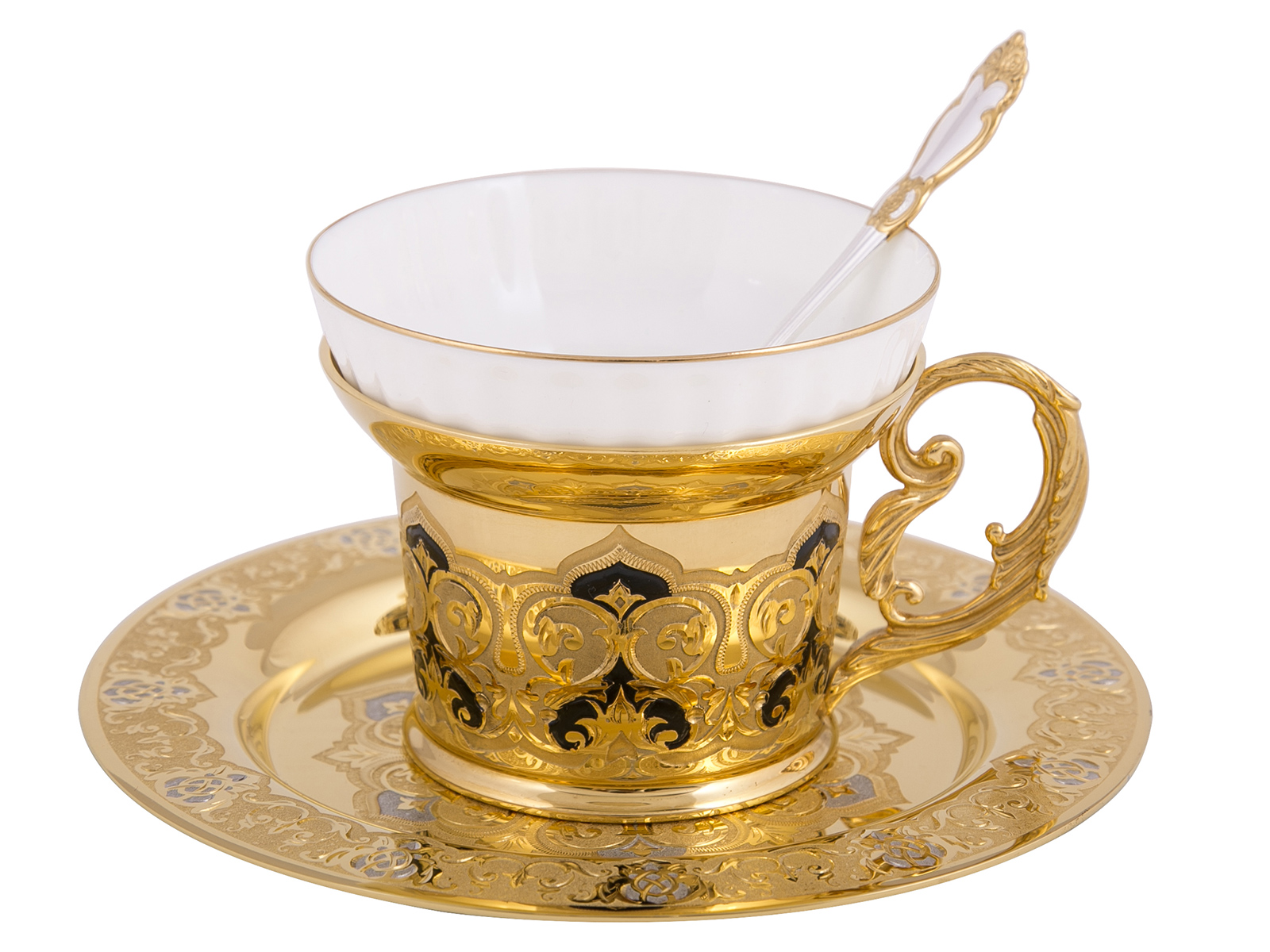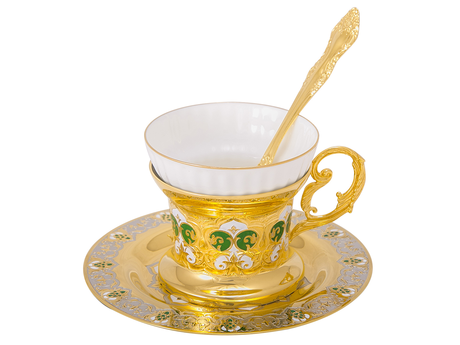 Набор кофейный "Кофе & сливки" (тарель d 110, чашка, ложка)Материал: латунь, императорский фарфо...