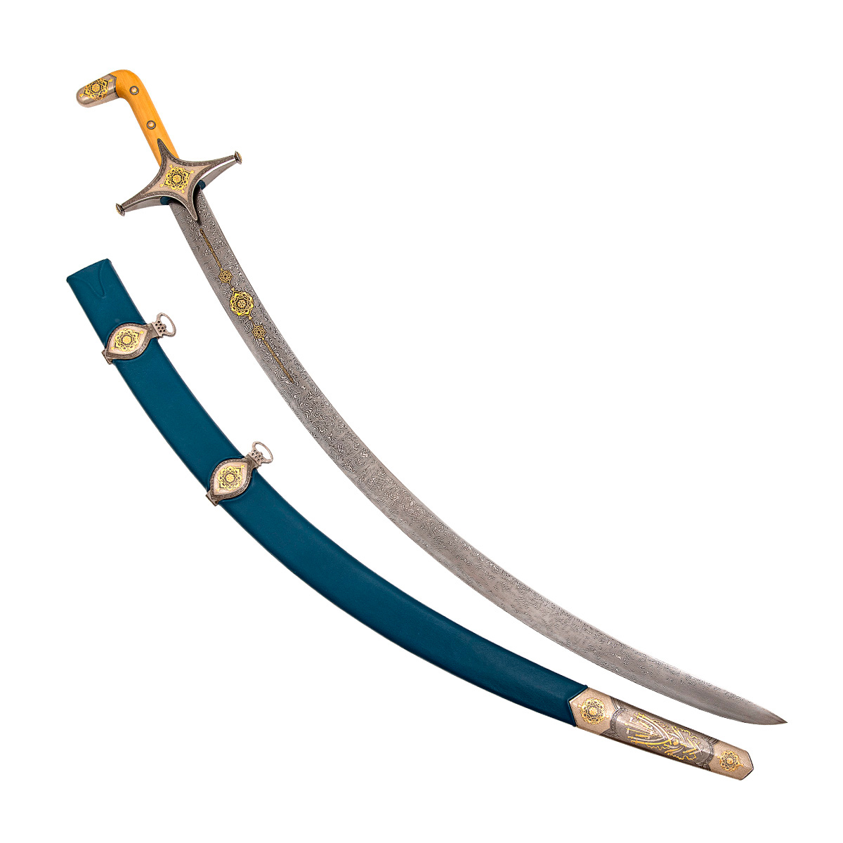 Сабля восточная Клыч Клыч имеет выкованный клинок из трехслойного индийского дамаска. Рукоять и ...
