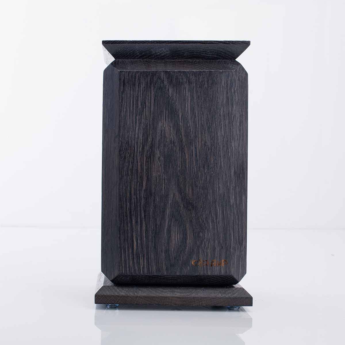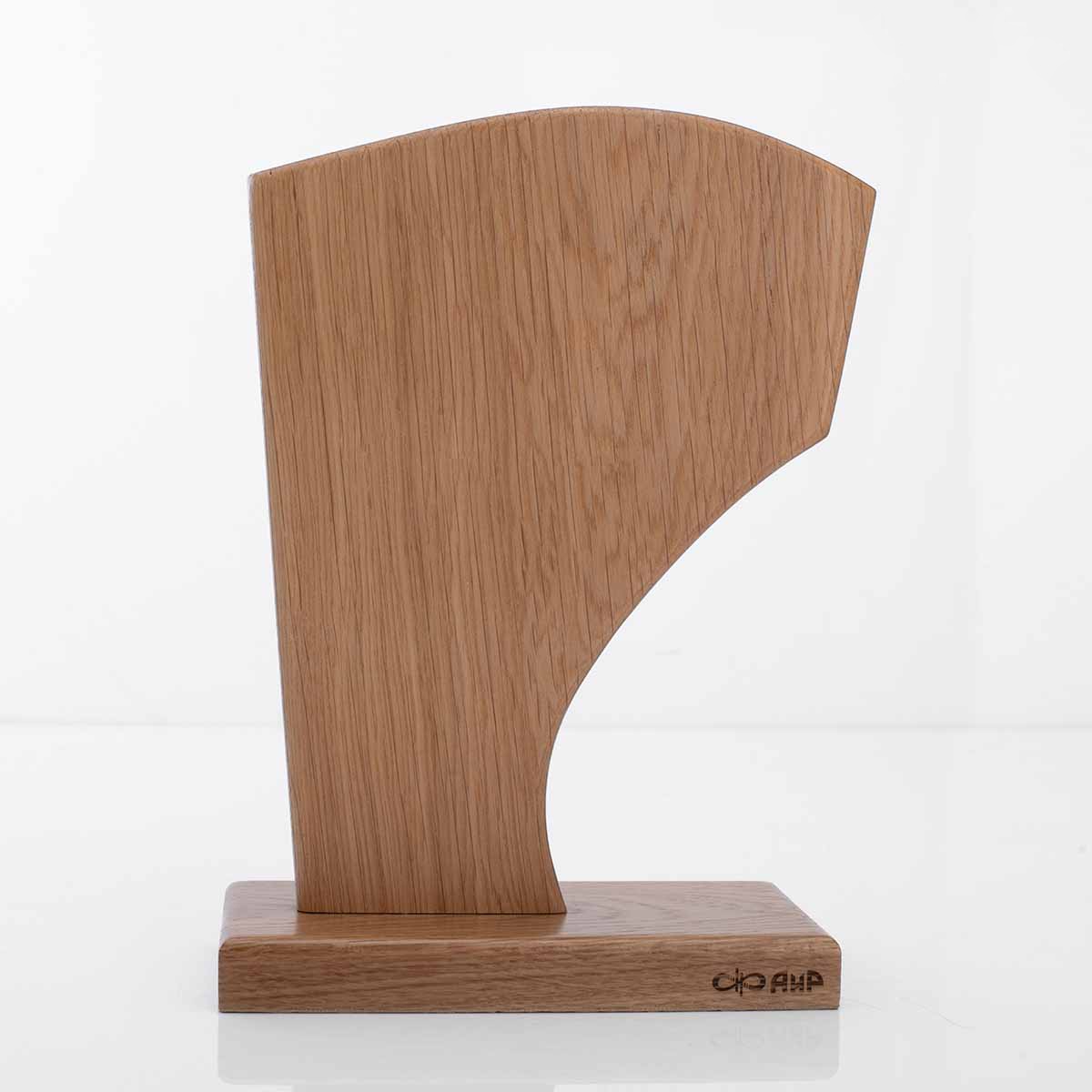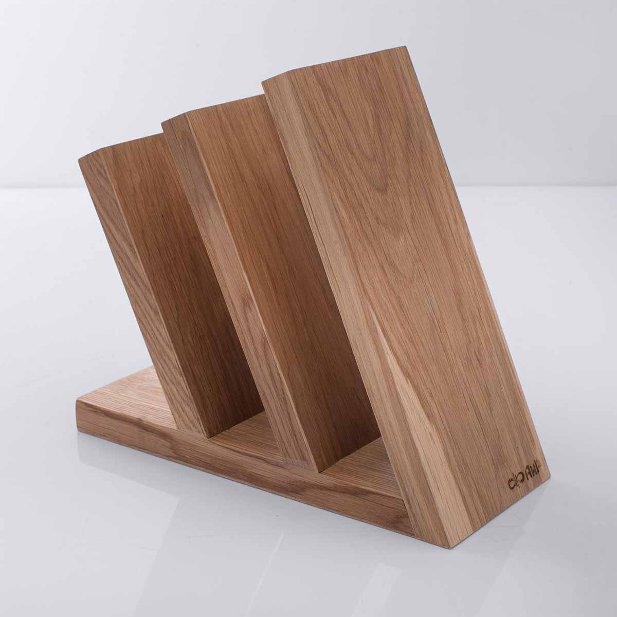 Удобный держатель для ножей из натуральной древесины дуба, который можно разместить прямо на столе....