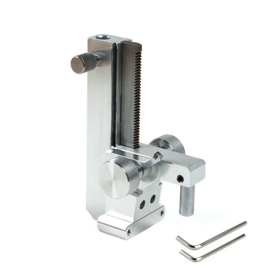 Подъемник дает возможность максимально плавно выставить угол и надёжно зафиксировать положение шарнирного узла на заданной высоте. Его установка на заточное устройство не просто добавляет функциональные возможности, но и расширяет диапазон доступных углов заточки (12°-33°).