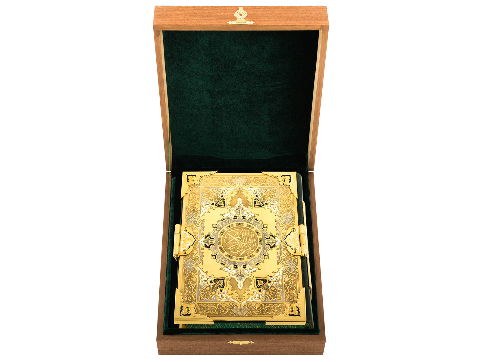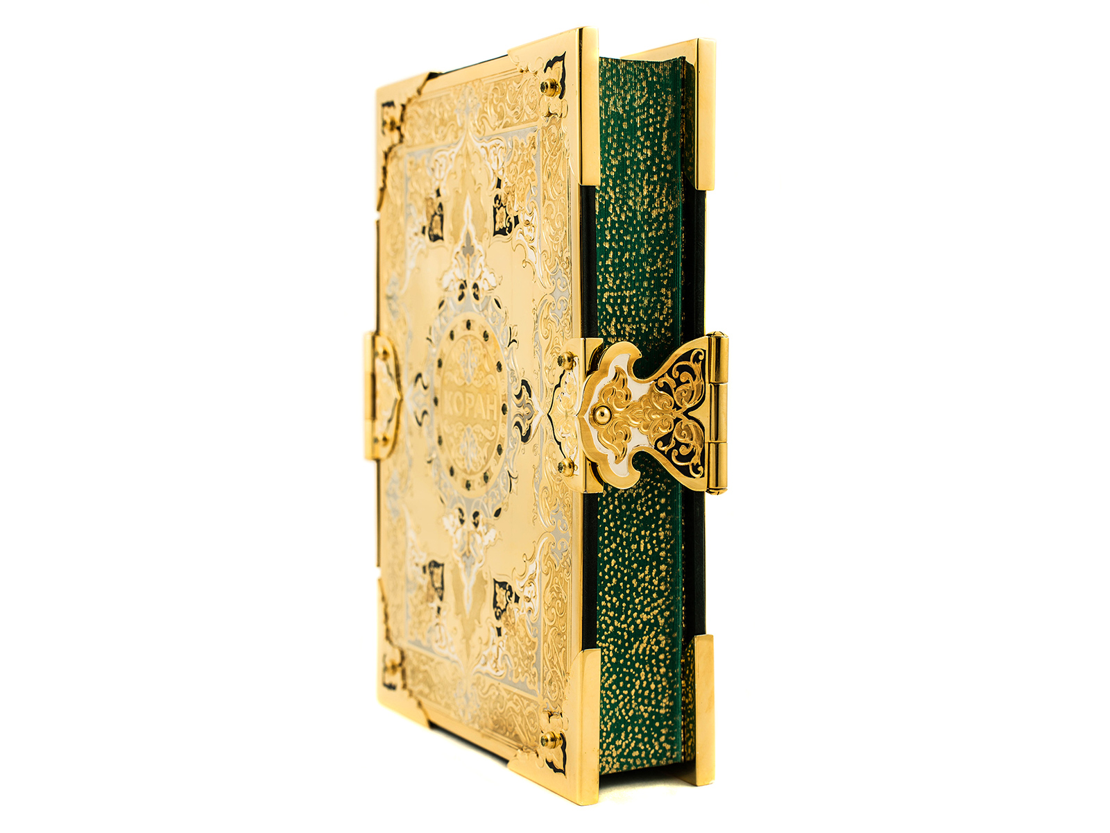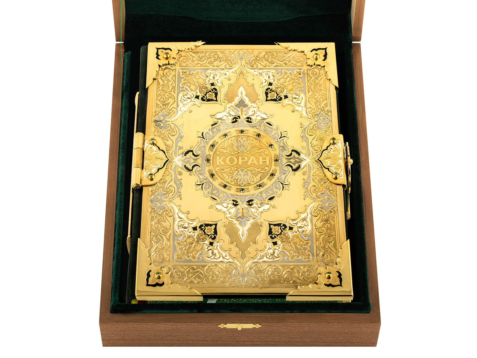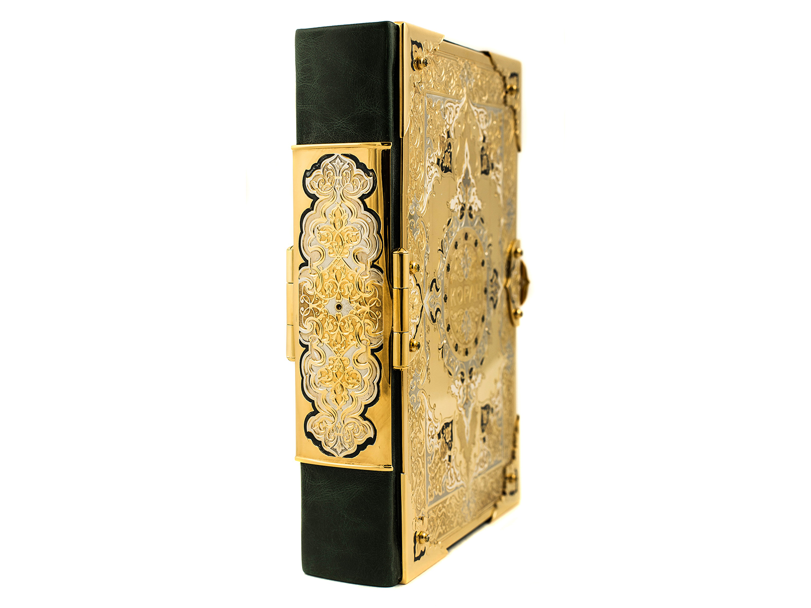 Книга, как известно, это лучший подарок. А идеальный подарок – это эксклюзивная книга ручной работы из драгоценных материалов. Представляем Коран, который изготовлен из латуни, с вкраплением фианита. Это уникальная работа с применением гравировки, рисовки кистью на металле, травления и прочими новыми технологиями. Это неповторимое издание, которое непременно вызовет восторг.