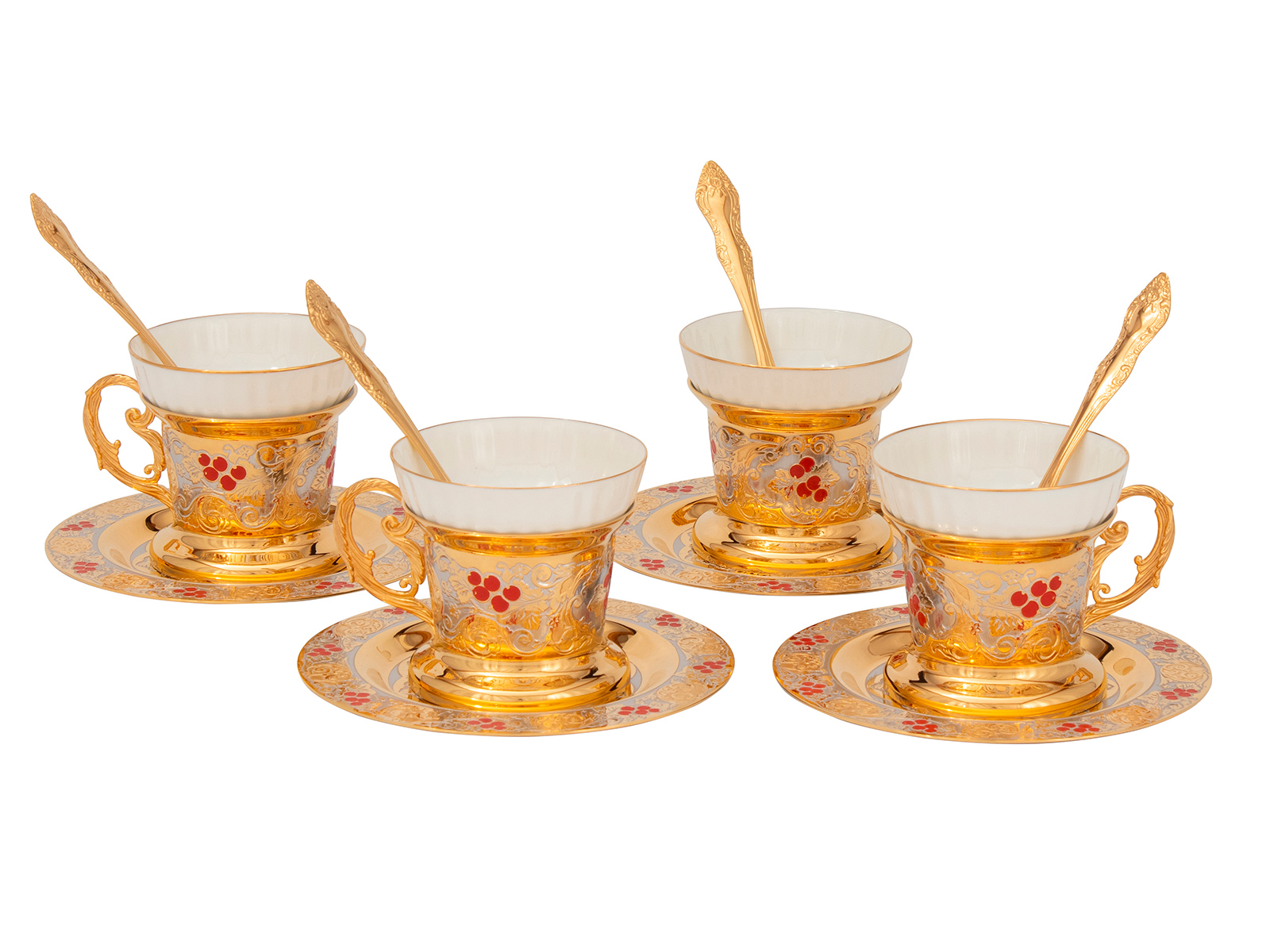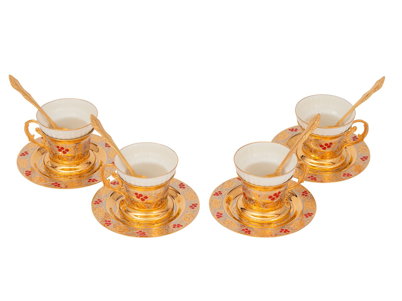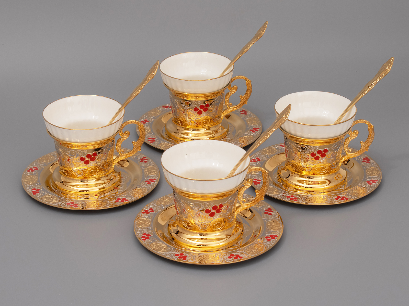 Набор чайный "Калина красная" (4 тарели, 4 чашки, 4 ложки)
