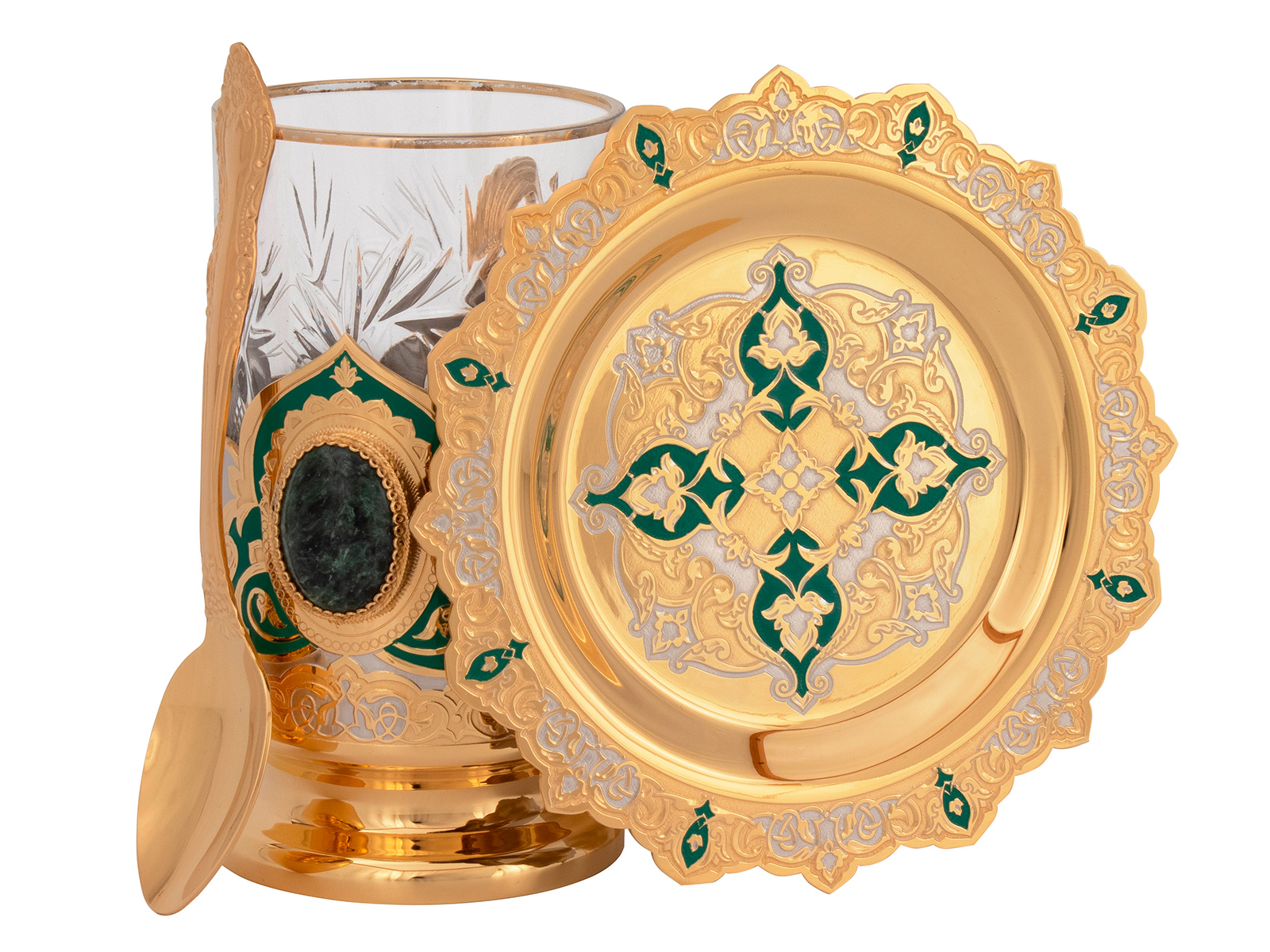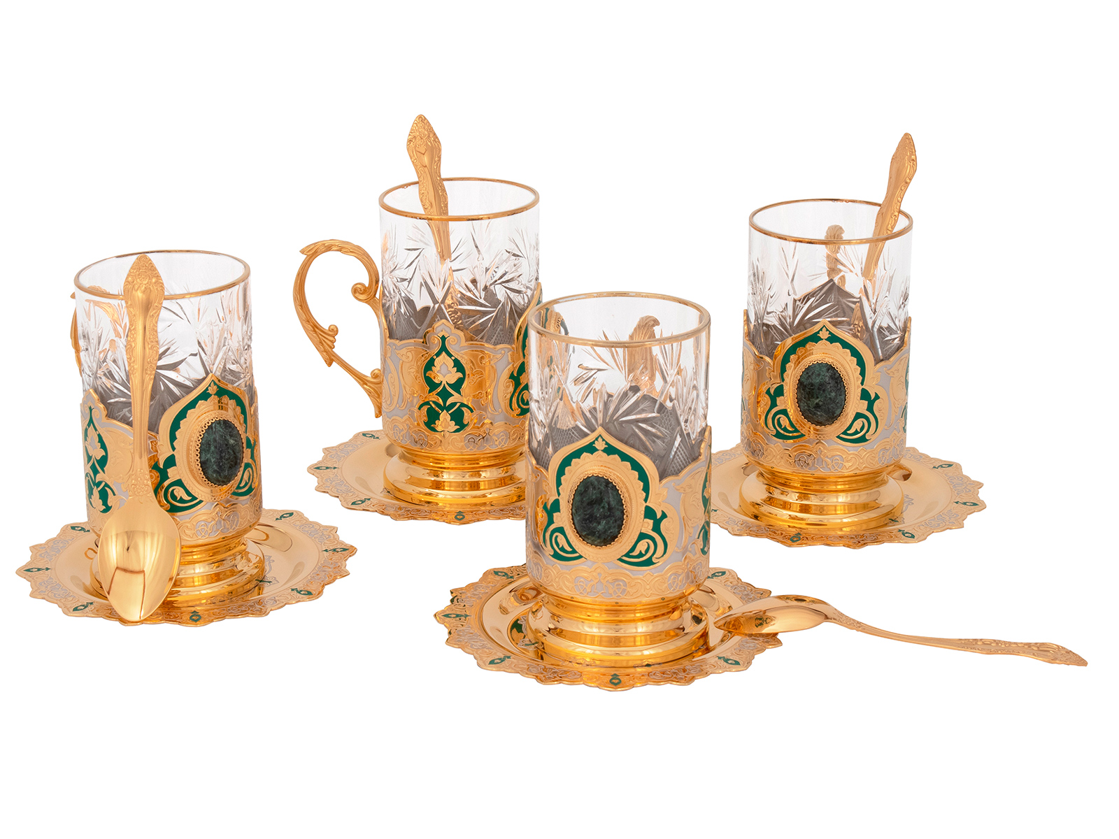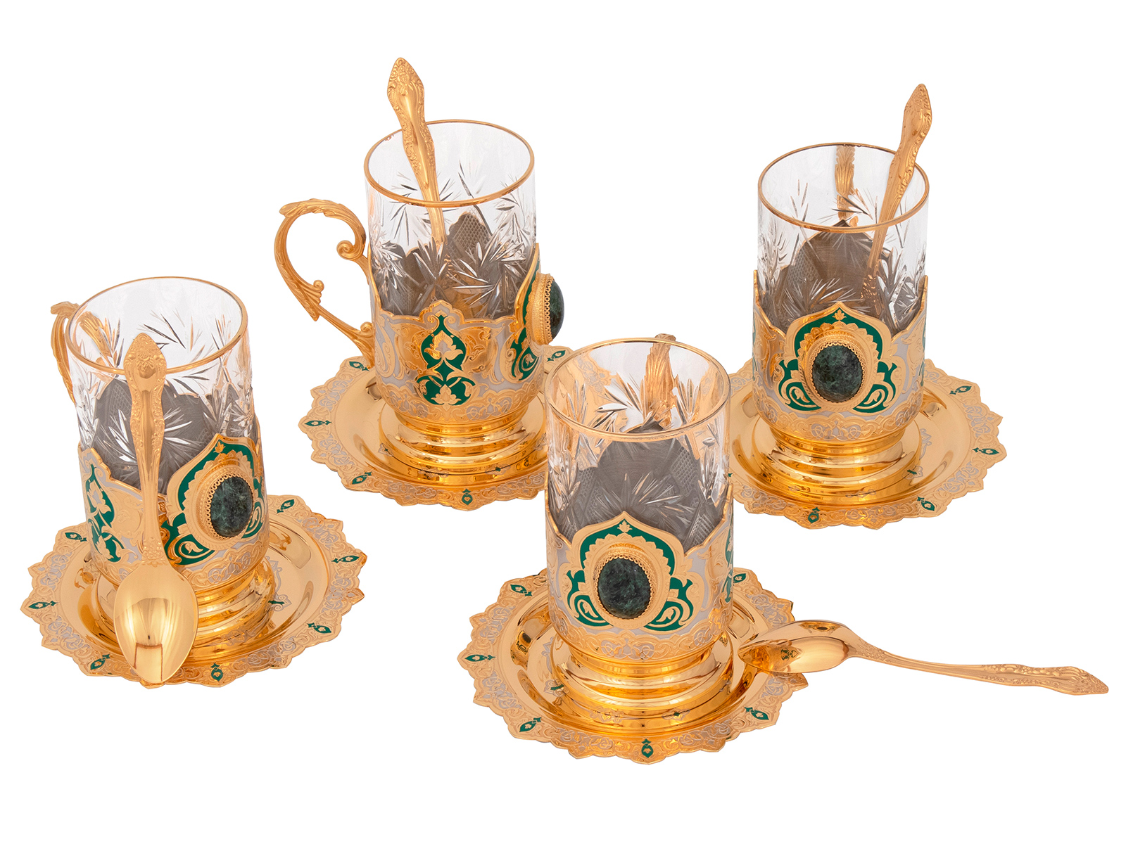 Набор чайный "Купеческий" (4 тарели, 4 подстаканника, 4 ложки)