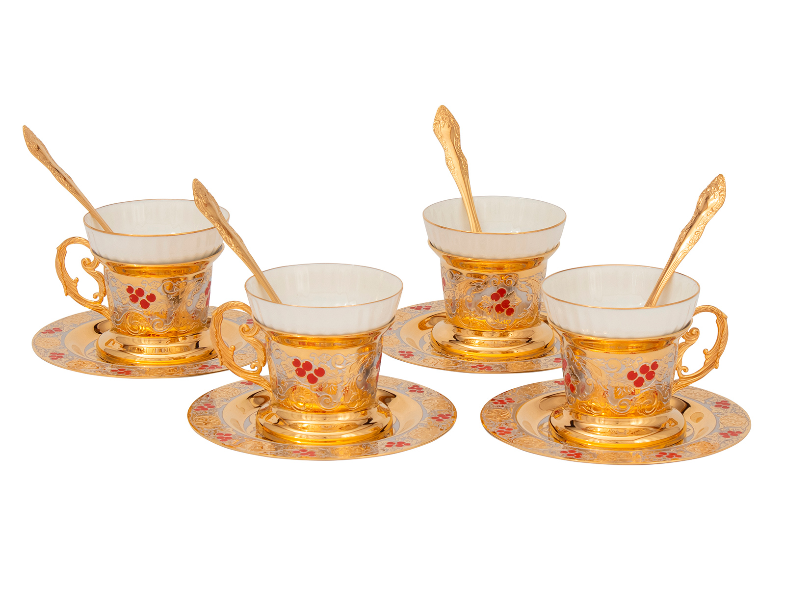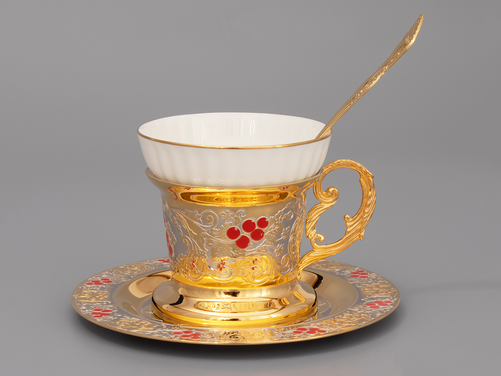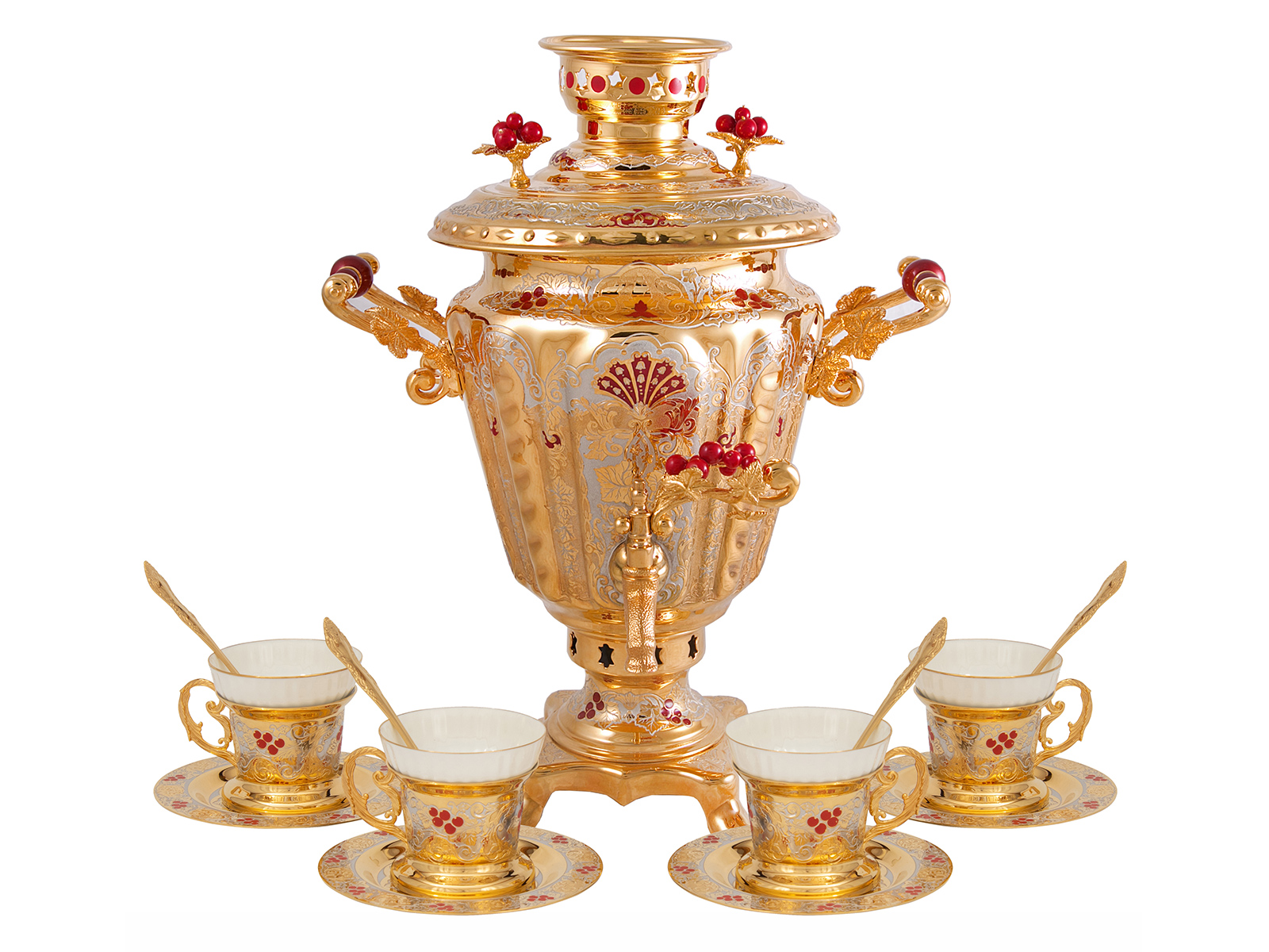 Купить Чайный набор с самоваром "Калина красная" этот подарок который подходит для торжественных случаев, и для повседневного использования. В набор входит: Самовар, 4 чашки и 4 тарелки
