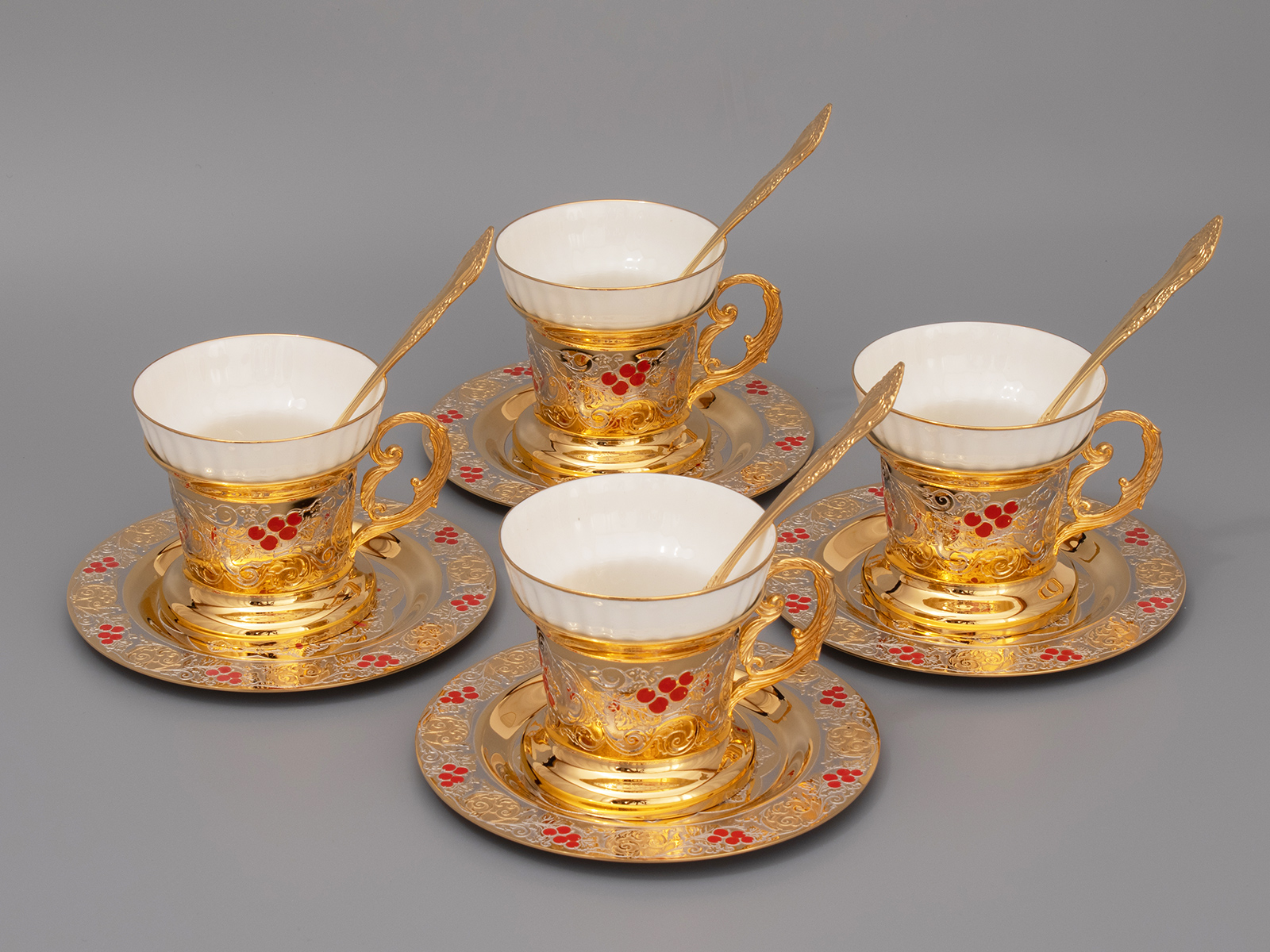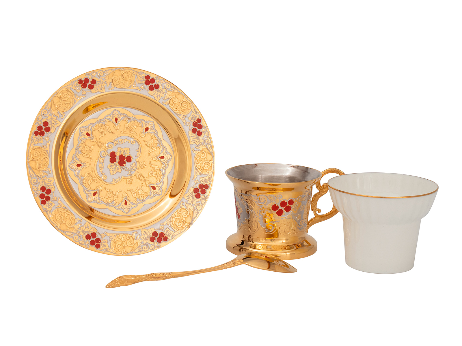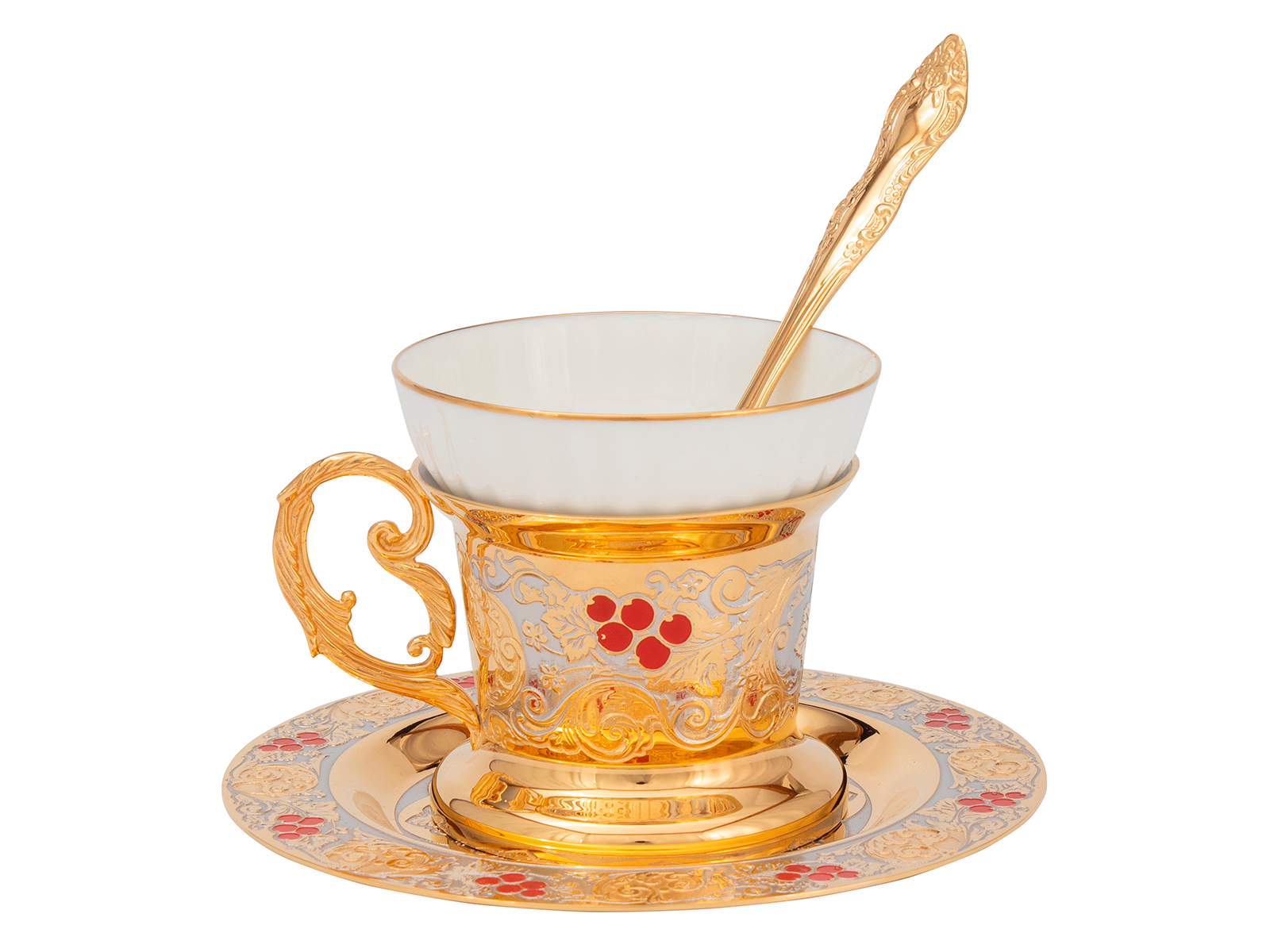 Купить Чайный набор с самоваром "Калина красная" этот подарок который подходит для торжественных случаев, и для повседневного использования. В набор входит: Самовар, 4 чашки и 4 тарелки