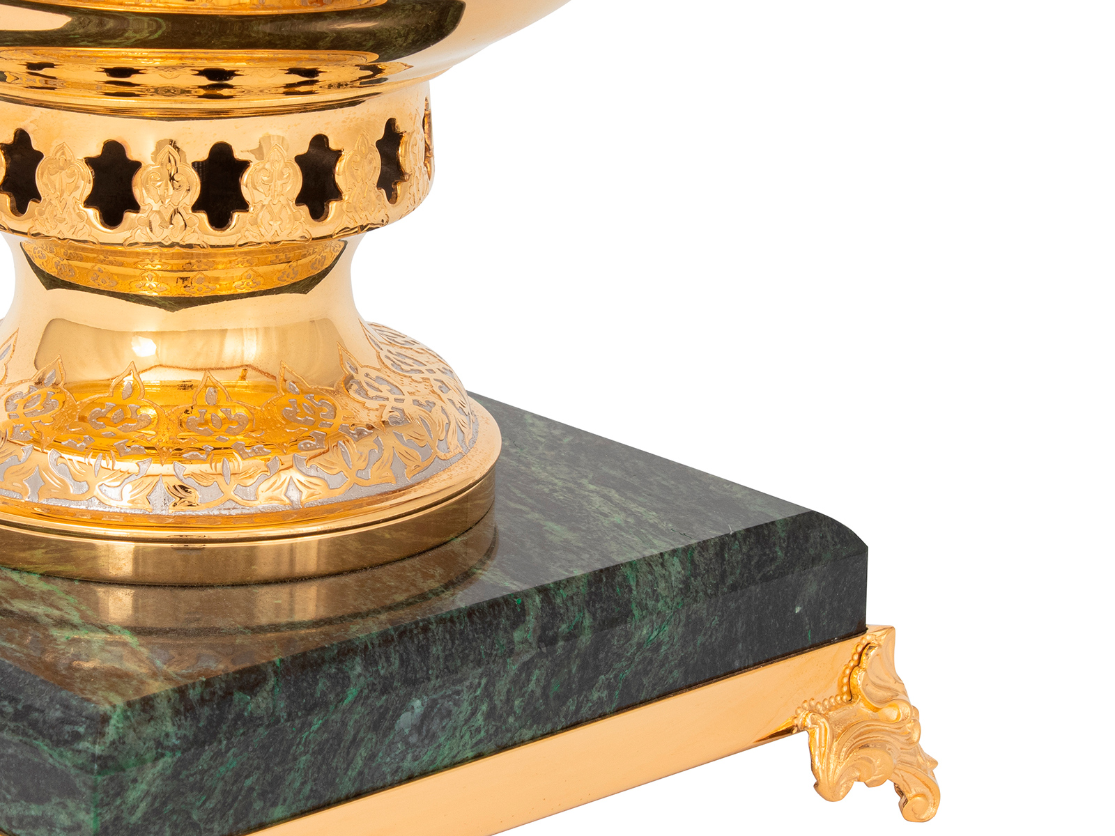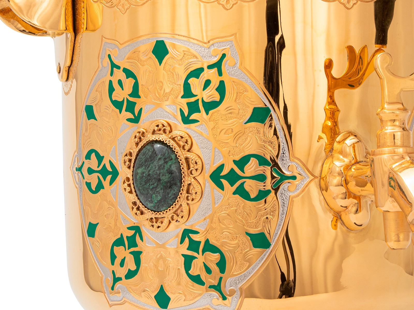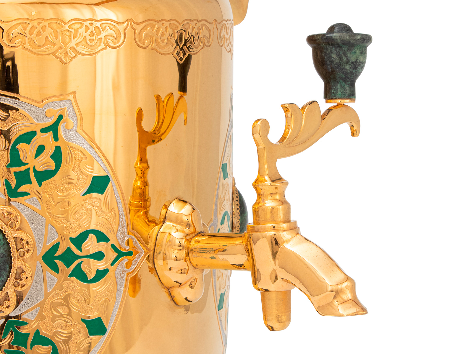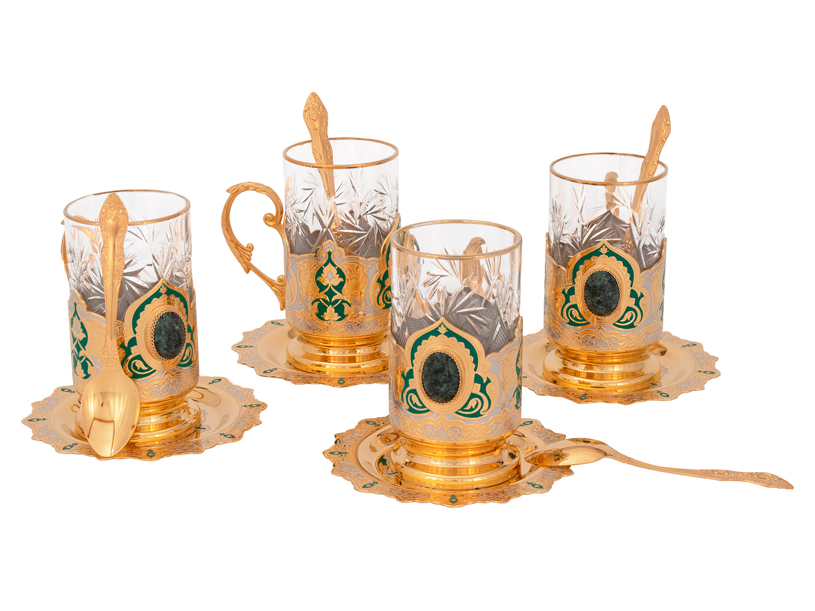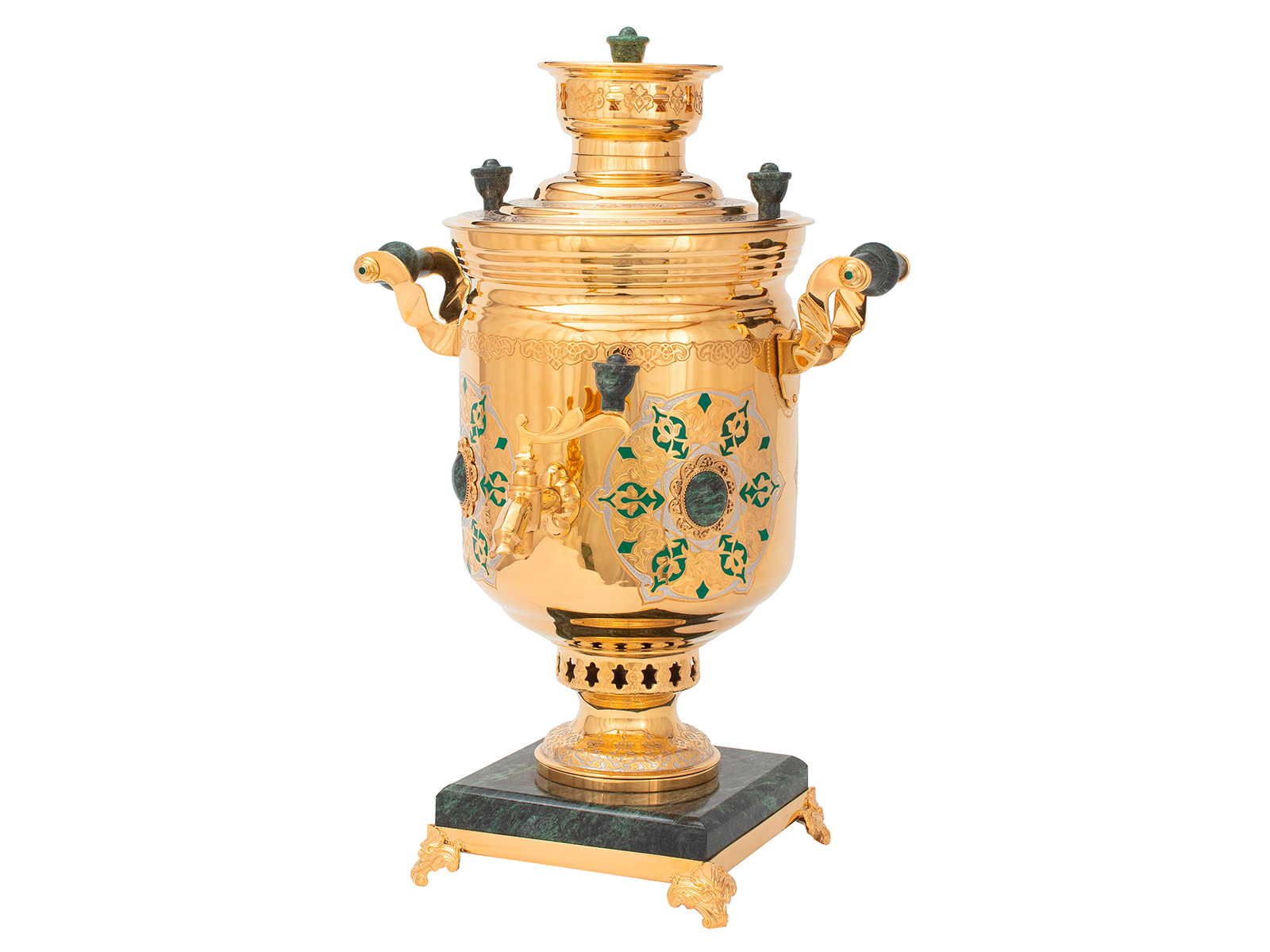 Купить чайный набор с самоваром Купеческий это эксклюзивный подарок который подойдет для торжественных случаев, так и для повседневного жизни, делая чайный ритуал волшебным и незабываемым. В набор чайный "Купеческий" входит: самовар, 4 подстаканника и 4 тарелки