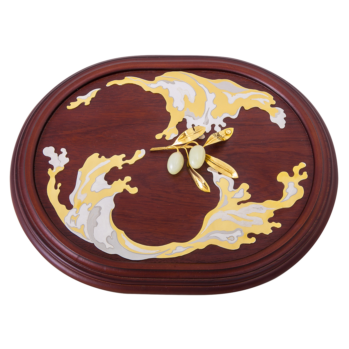 Материал: латунь, подставка из ценных пород дерева.