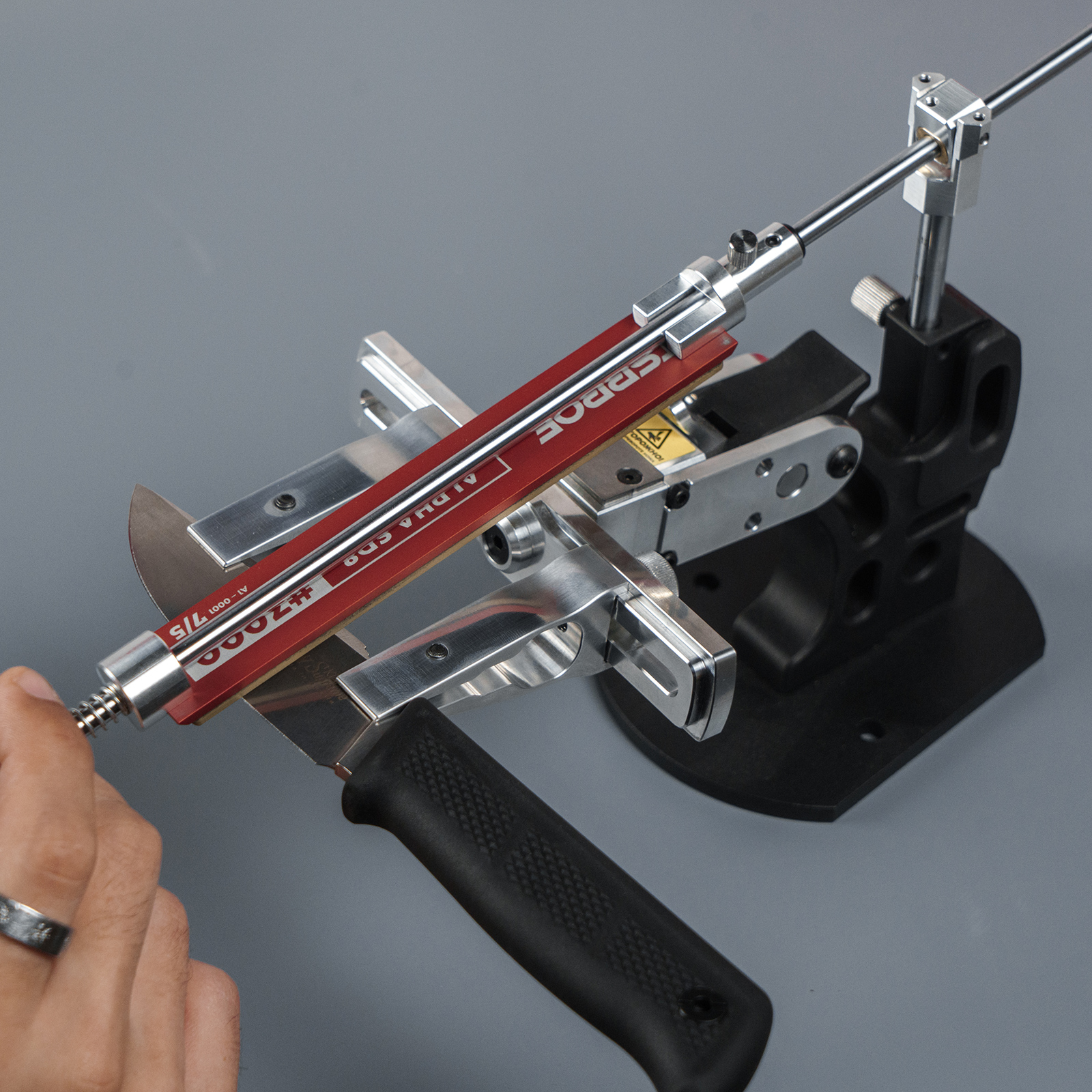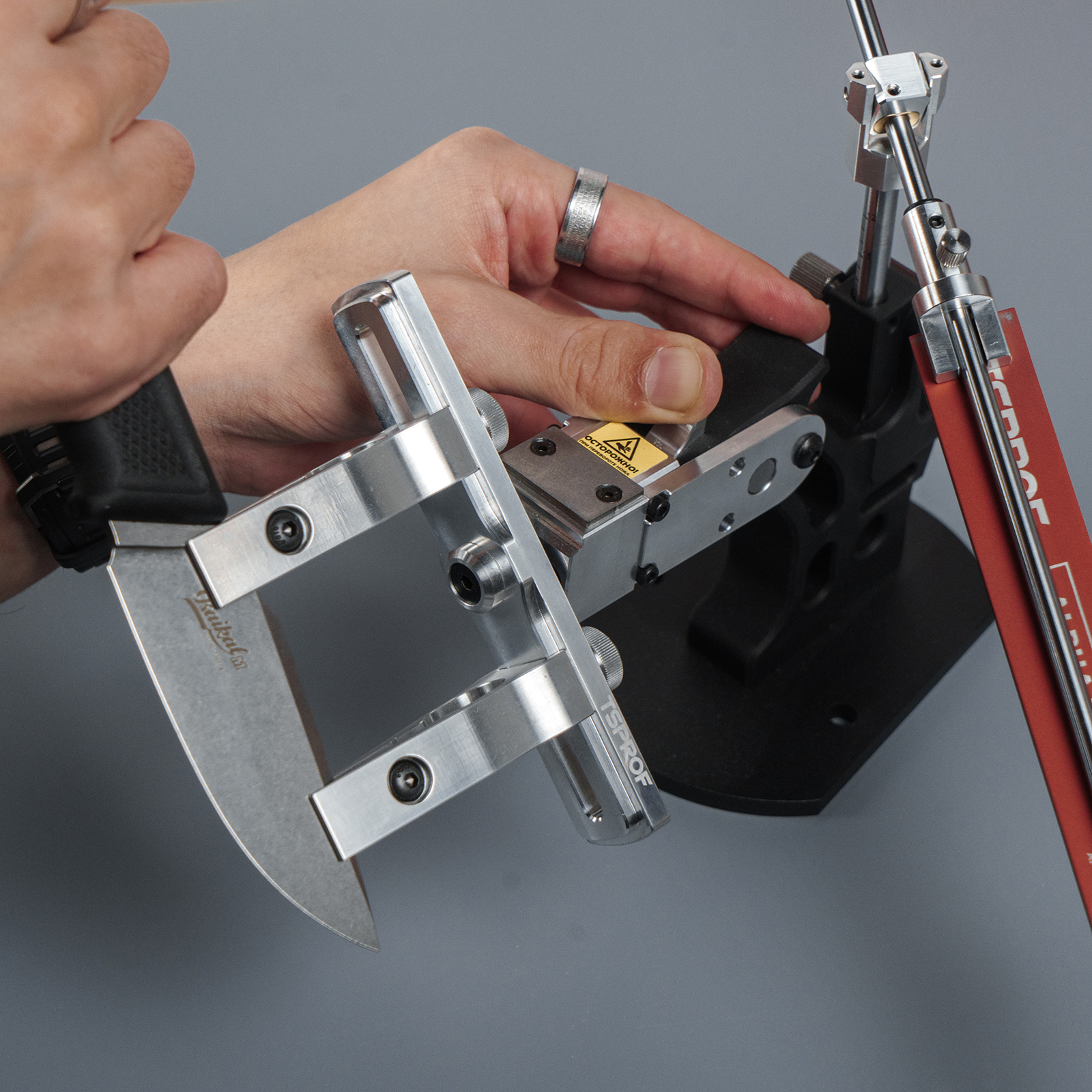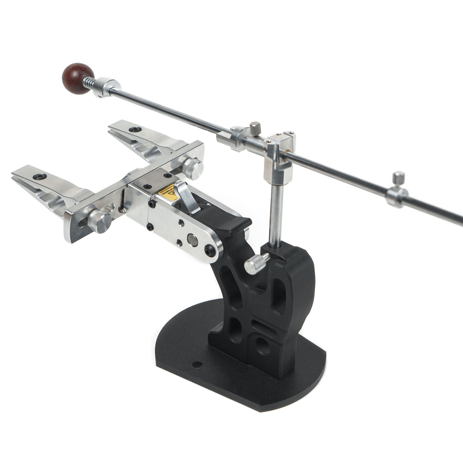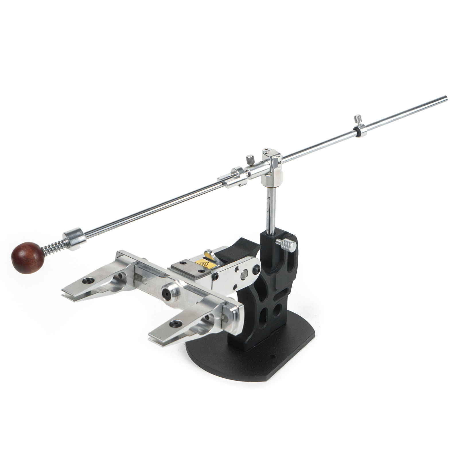 TSPROF Pioneer GE – самое легкое из заточных устройств (весит всего 1,4 кг), и для его крепления к столу используется поставляемая в комплекте струбцина. Унифицированное основание позволяет установить системы в подставку Профиль К03. Затачивать ножи на TSPROF Pioneer GE удобно как левшам, так и правшам, поскольку все элементы устройства можно расположить под левую или правую руку.