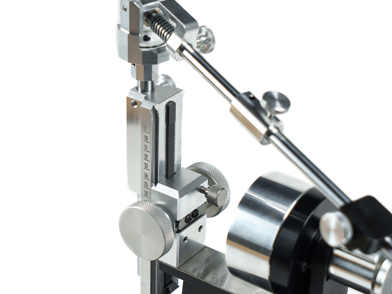 Ответная часть подъемника изготовлена из прочного авиационного алюминия. Он обеспечивает отличную плавность хода, благодаря усовершенствованной форме зубьев стальной рейки. Крепление ползуна происходит через соединение типа ласточкин хвост, что исключает люфты механизма при работе, которые могли бы сказаться на качестве заточки. Шкала измерения углов нанесена на боковую поверхность ползуна и дает возможность визуально контролировать их установку. Для обеспечения работы механизма реечного подъемника применяется высококлассная тефлоновая смазка. Она образует скользкую, устойчивую к коррозии прозрачную пленку, гарантирующую плавность хода, а также защиту от воды, масла, грязи и пыли.