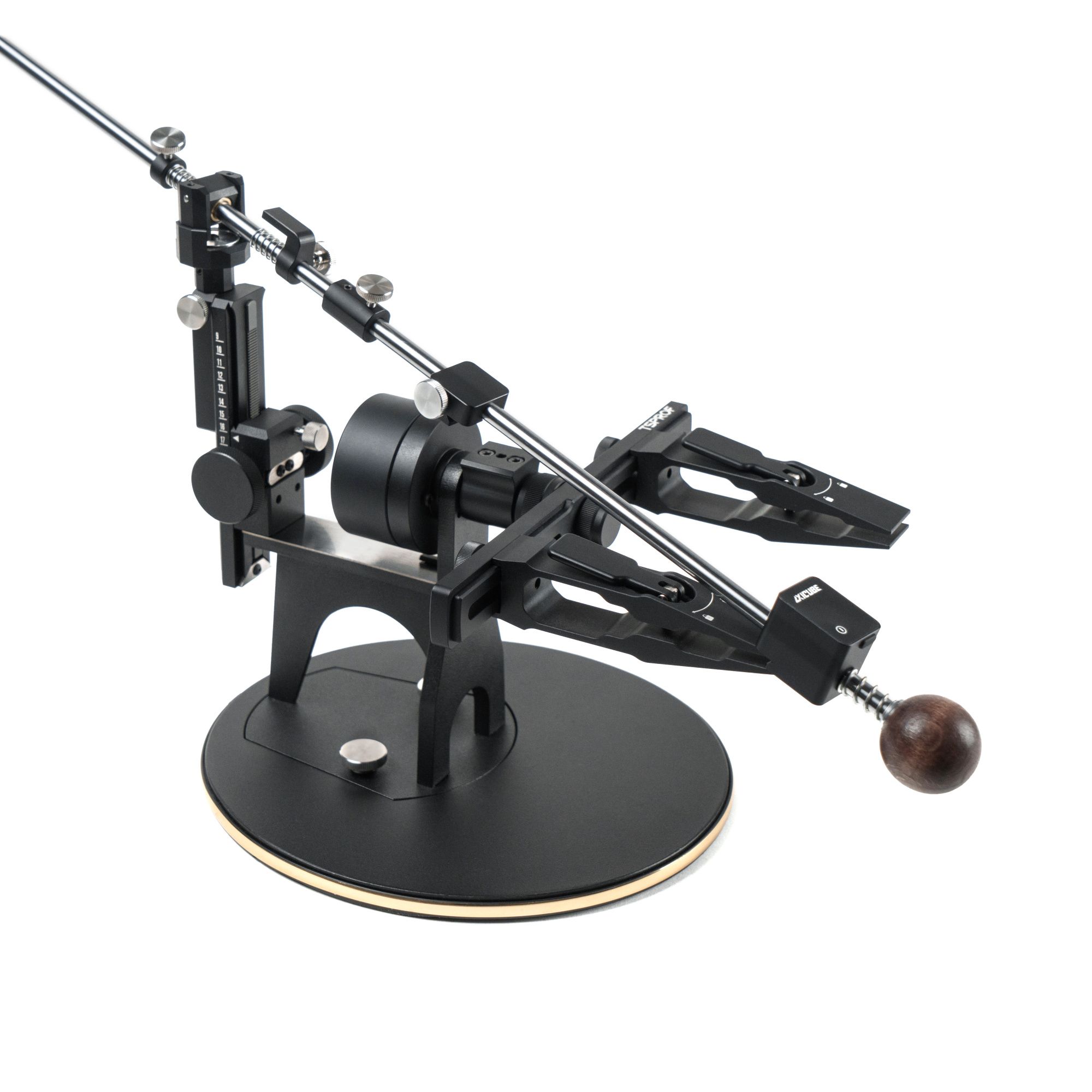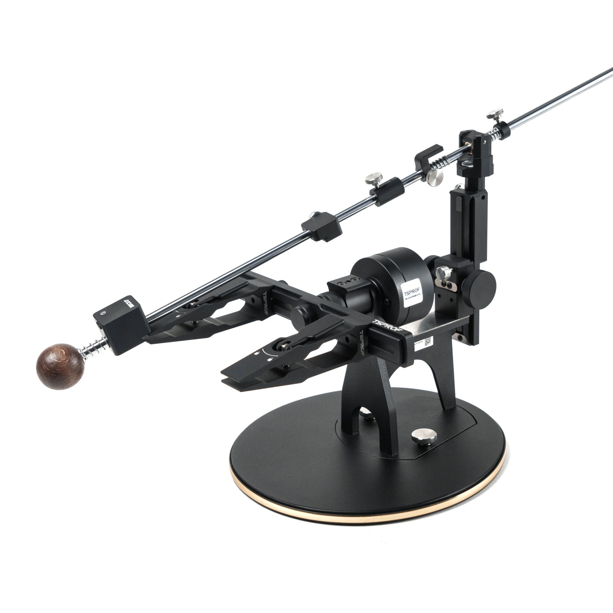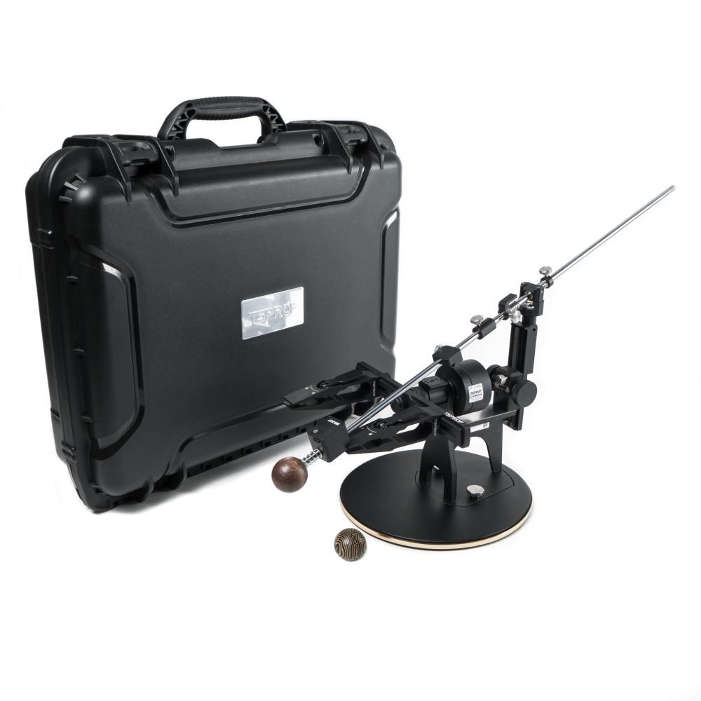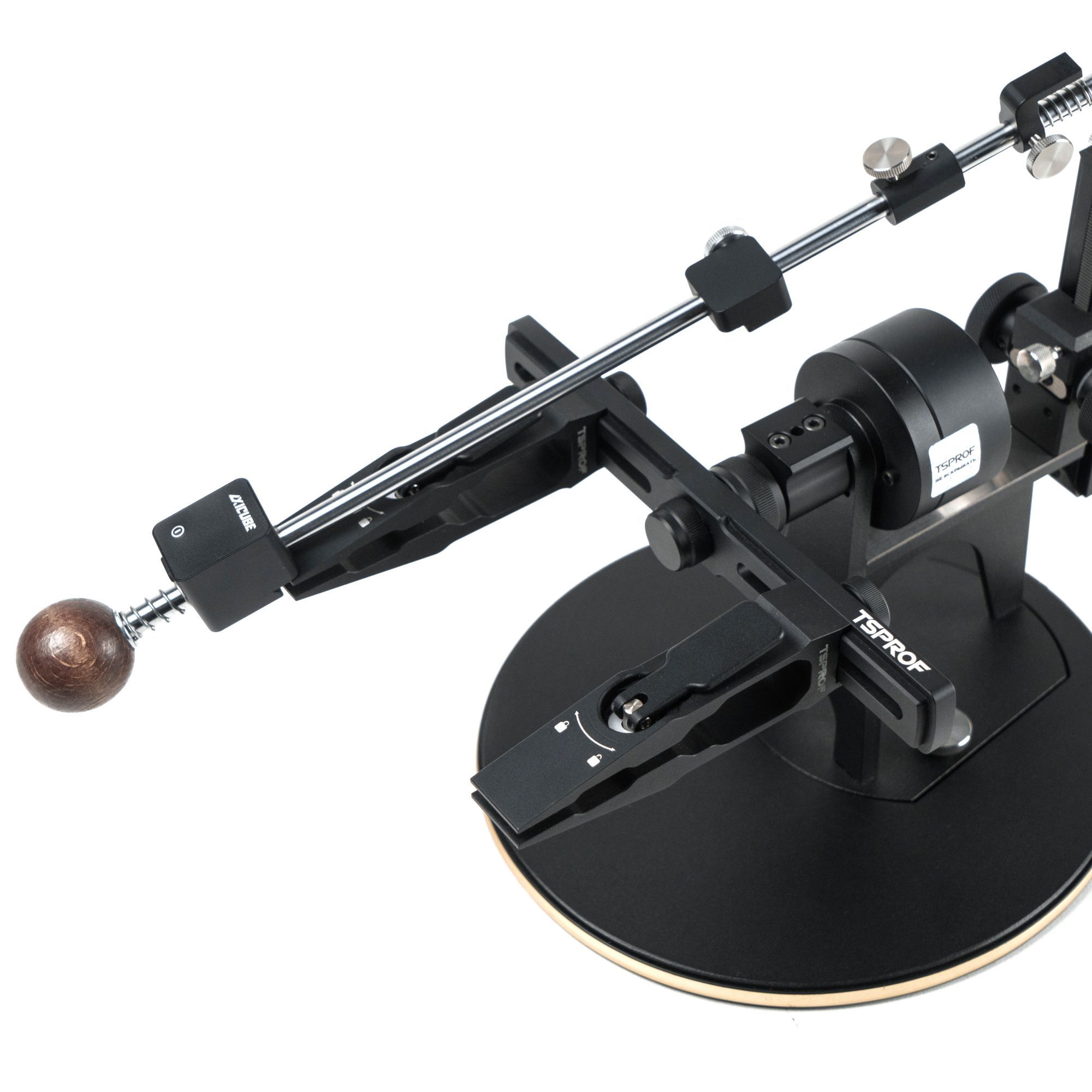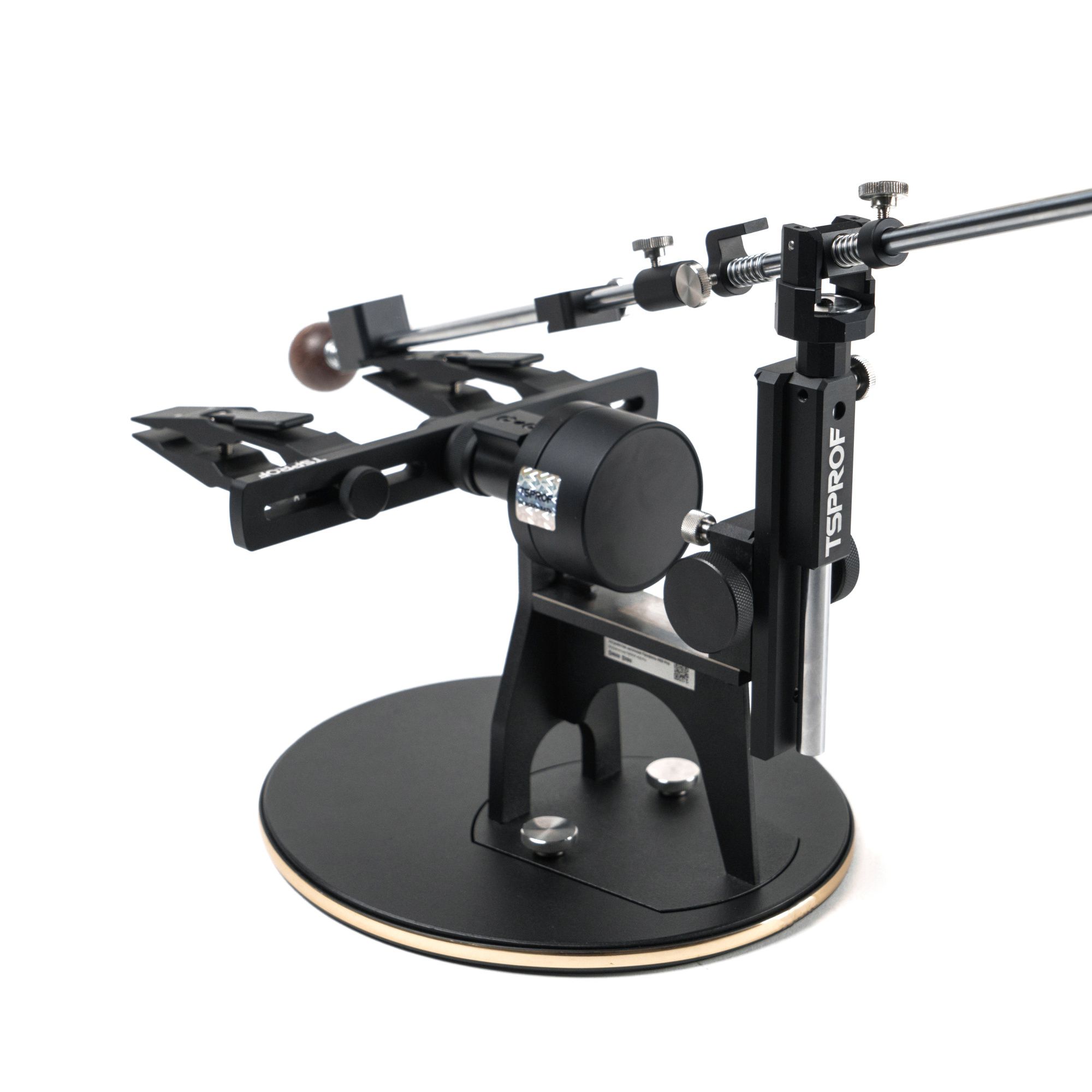 Основой данного набора является система заточки TSPROF Профиль К03 Pro 2026. Система оснащена поворотным механизмом с регулируемым усилием переворота рамки, реечным подъёмником, с бесступенчатой регулировкой, держателем абразива с электронным угломером Axicube-i, который является незаменимым помощником при выставлении угла заточки.