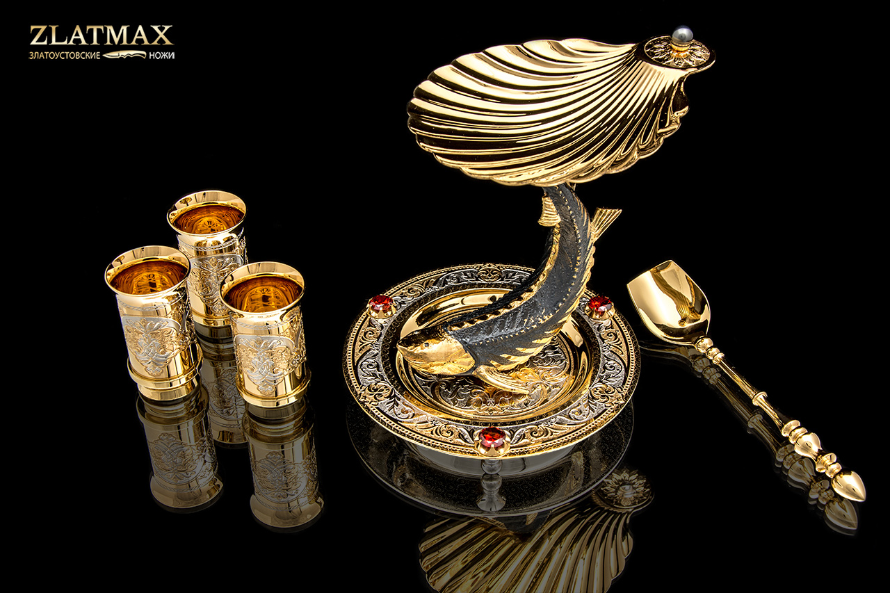 Купить Икорница со стопками "Белуга" - это эксклюзивный Vip подарок который можно приобрести в нашем магазине "ЗЛАТМАКС". Только лучшие VIP подарки и дорогие сувениры от златоустовских оружейных заводов и фабрик. Быстрая доставка по всей России, возможна доставка самолетом!