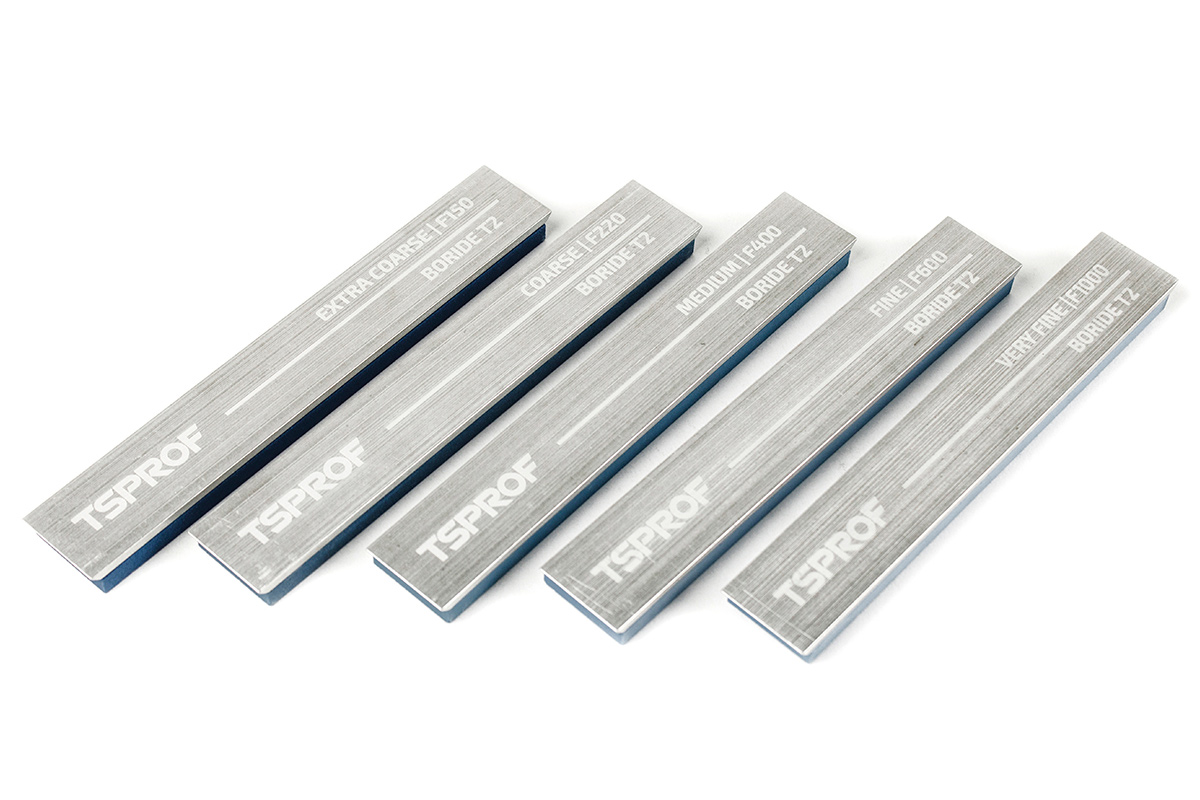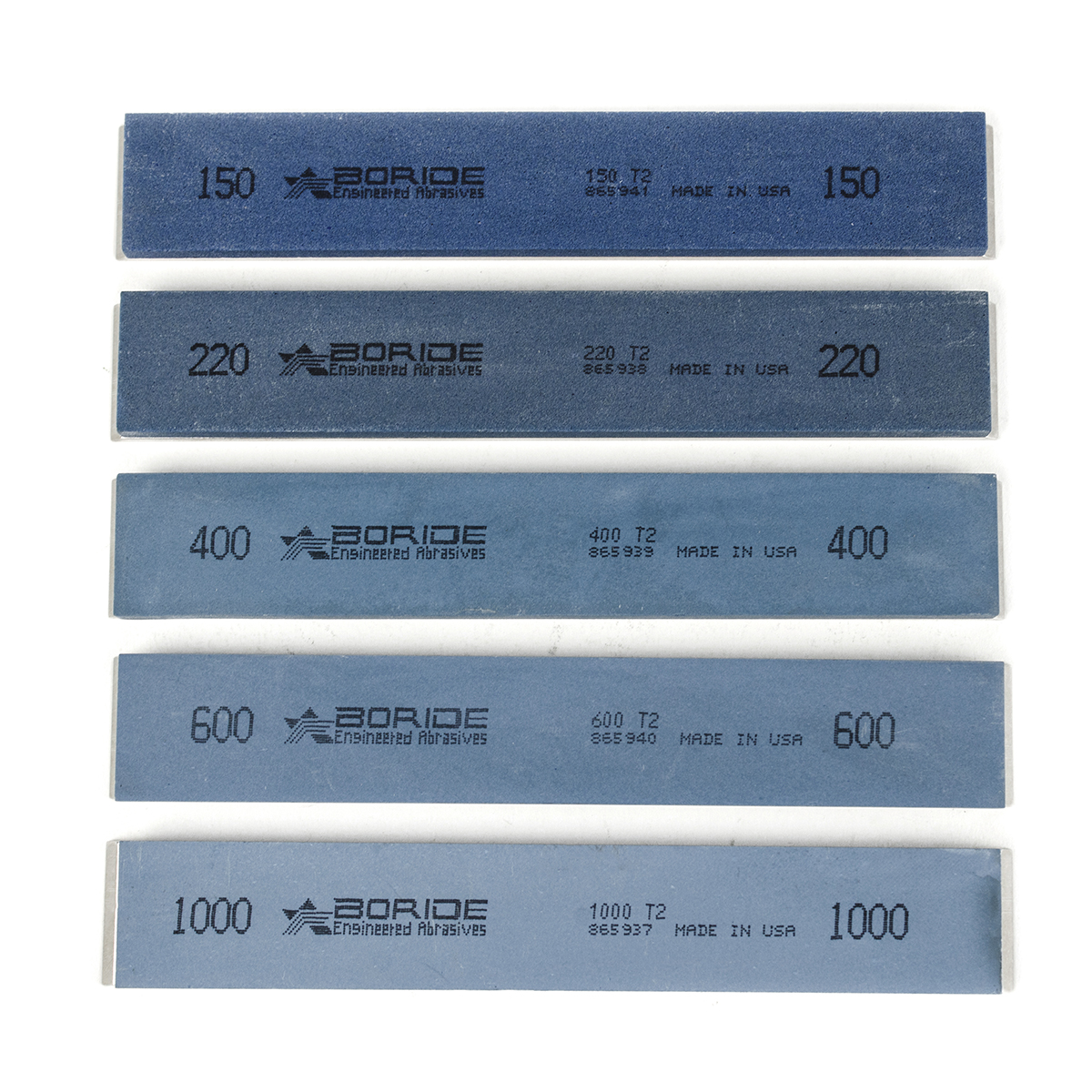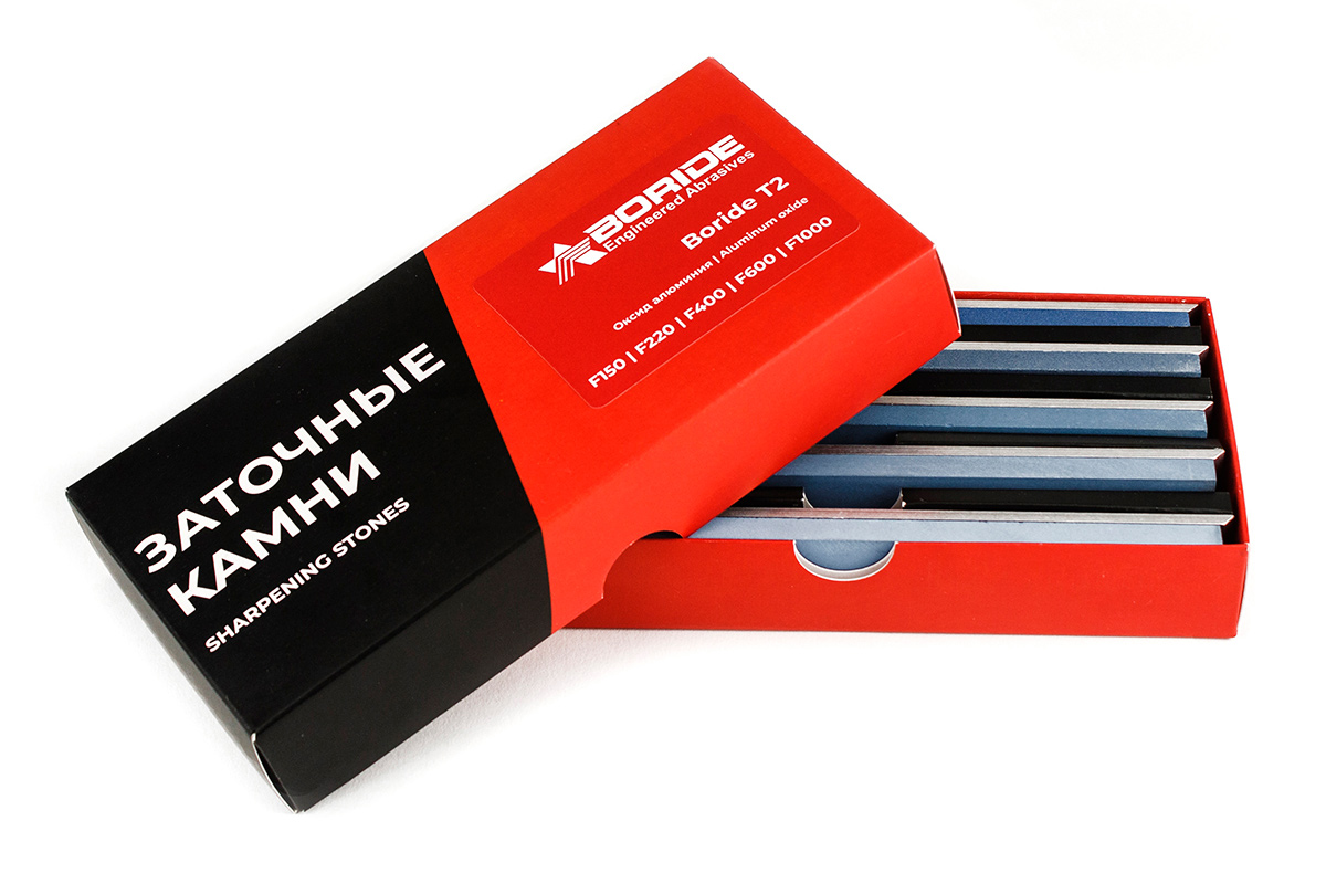 В комплекте камней Boride T2 собраны абразивы различной зернистости: от 150 до 1000 грит. Такого набора будет достаточно для всех видов работ, от обдирки до финального шлифования.
