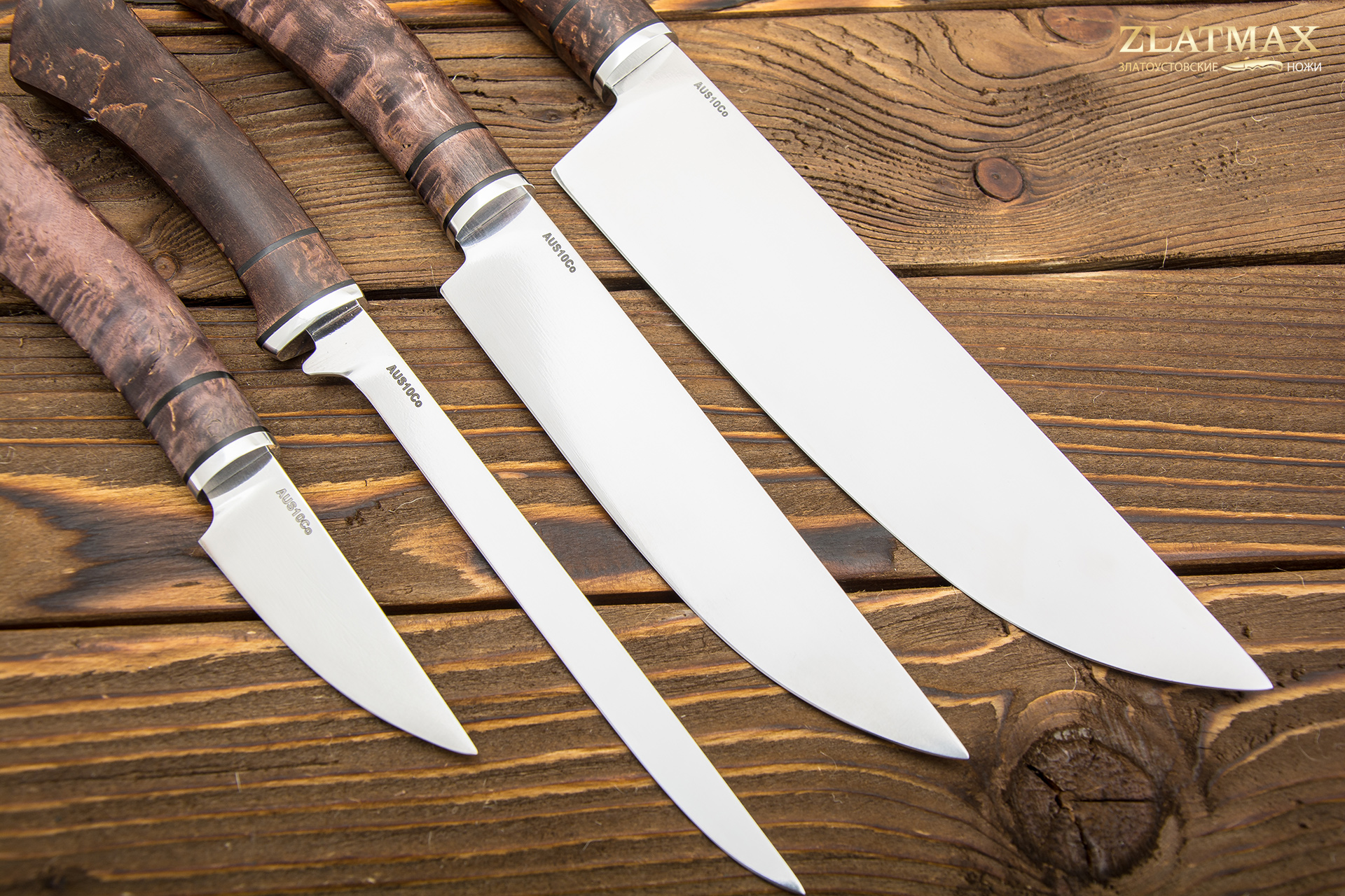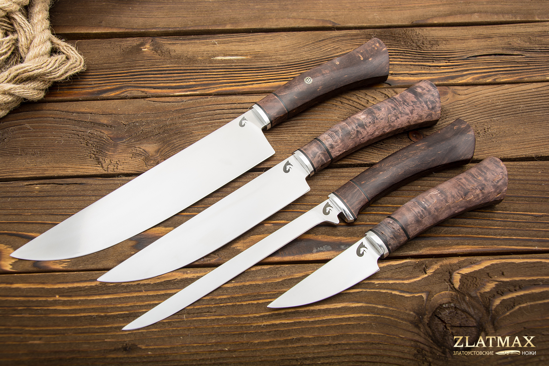Набор кухонных ножей Кухонная четвёрка, сталь AUS10Co, рукоять Стабилизированная карельская береза