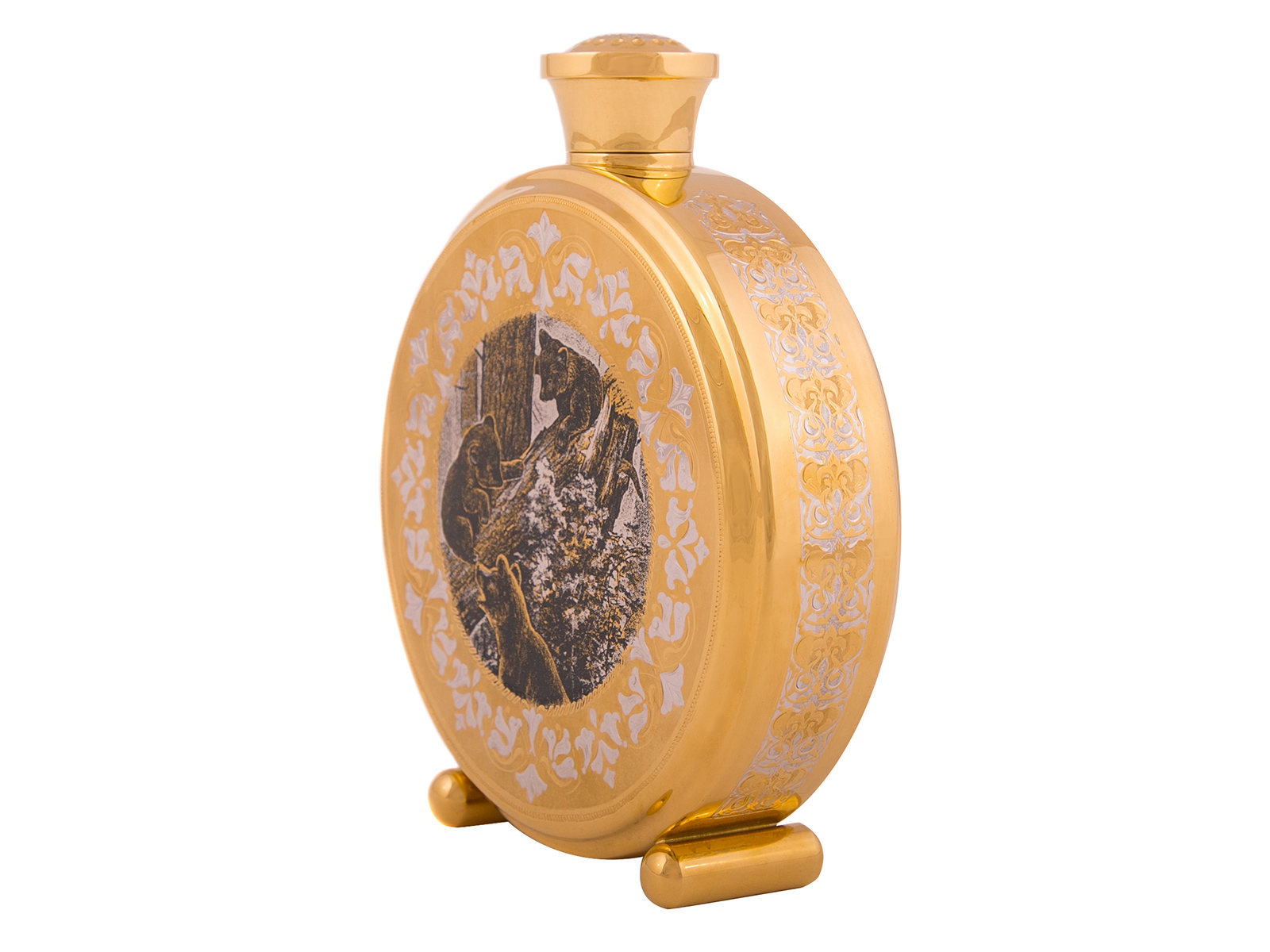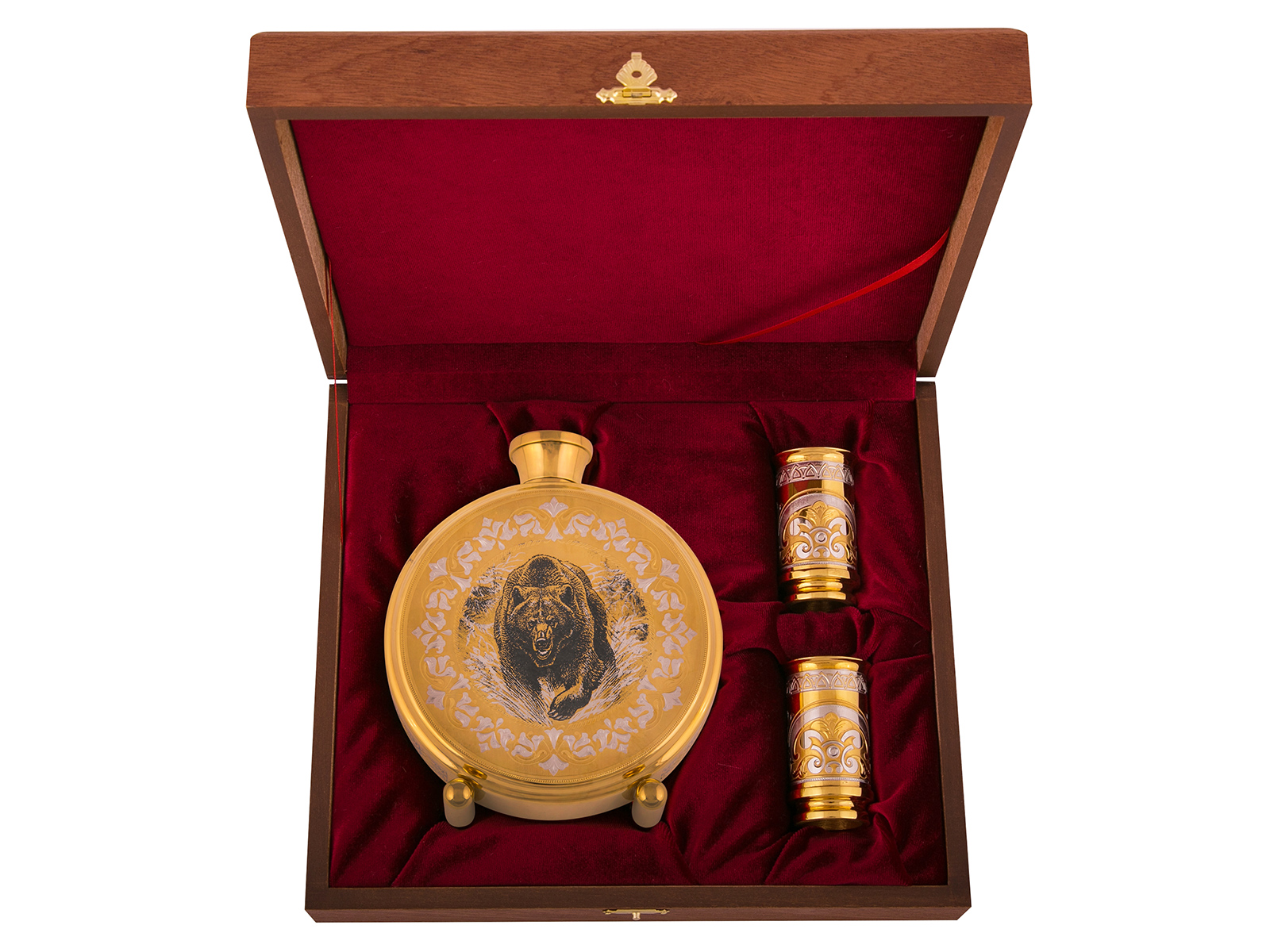 В набор входят такие предметы как фляга и две стопки. «Медведица» - это набор, функциональность и уникальность которого сможет по достоинству оценить любой настоящий охотник. Благодаря своим эргономичным размерам его удобно будет брать с собой, охотясь на очередного крупного зверя. Даже, при интенсивной эксплуатации, с ним ничего не случится, ведь производитель гарантирует качество паспортом и сертификатами, предоставляемыми на каждое изделие ручной работы.