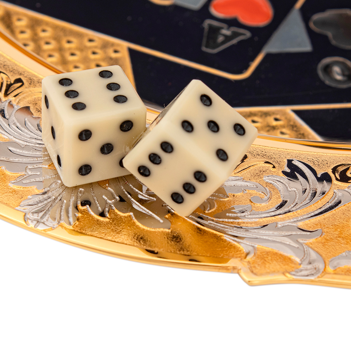 Материал: латунь, хрусталь, эмаль, кость слона(кубики).