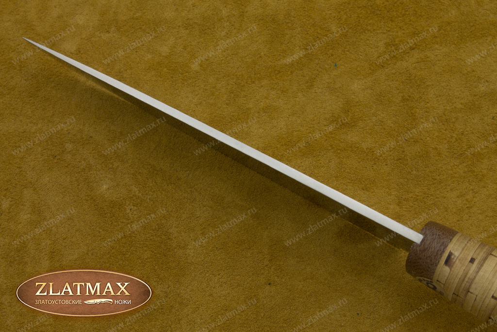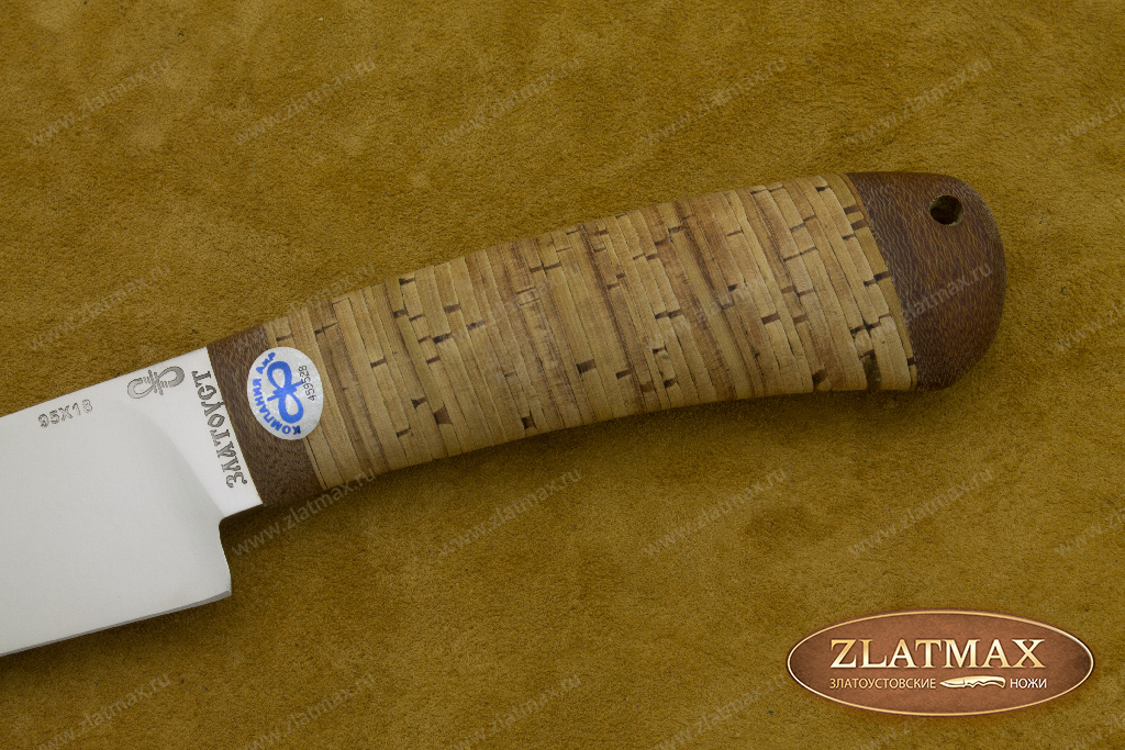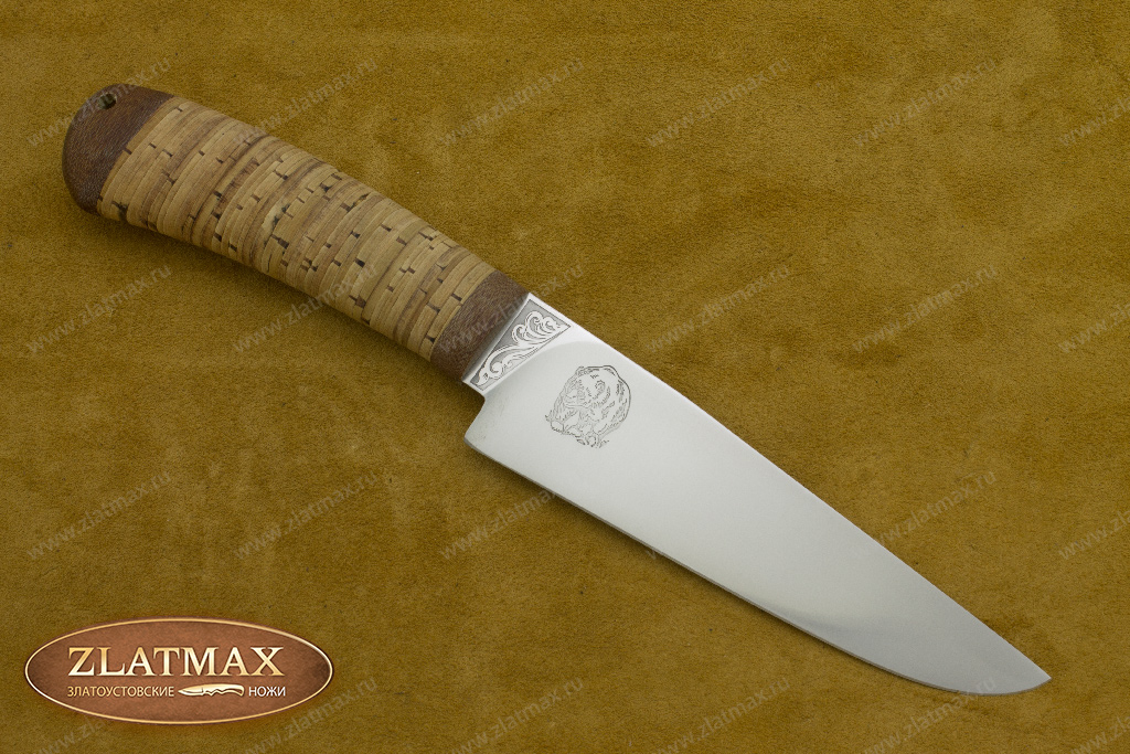 Хороший нож для коротких прогулок в лес, на пикник. Монтаж рукояти сквозной, неразборный. Форма клинка и отсутствие гарды делают этот нож незаменимым помощником при работе с продуктами на кухне и даче. Широкий клинок с прямыми спусками от самого обуха образует тонкое, прекрасно режущее лезвие с толщиной около 0,5 мм в районе подводов. Необходимо проявлять некоторую осторожность при работе с большими боковыми нагрузками на лезвие ножа, ввиду небольшой толщины клинка в рабочей части.