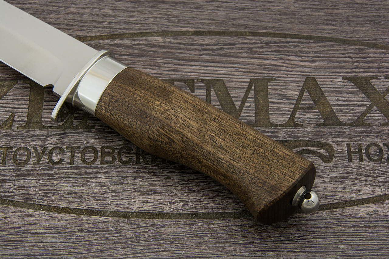 Такая рукоять будет легкой, долго прослужит своему обладателю, не будет скользить в руке. При низких температурах может оставаться холодной. Стоит помнить, что орех не любит большие нагрузки, поэтому таким ножом лучше не стучать по другим предметам и следить за тем, чтобы такой нож не падал с большой высоты.