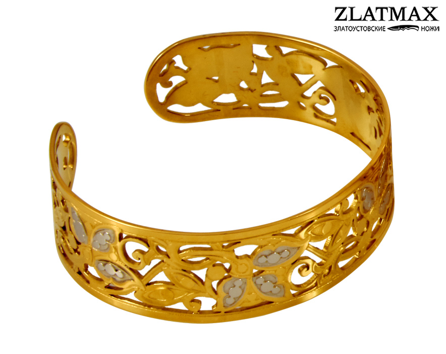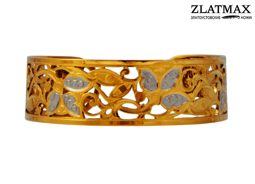 Браслет изготовлен в традиционной технике Златоустовской гравюры на металле. Выполнен в просечной ажурной технике. Украшен растительным орнаментом. Браслет является аксессуаром, который поможет завершить образ и станет штрихом, подчеркивающим элегантность женских рук. Браслет регулируемый под руку владелицы, поставляется в бархатной коробочке.
