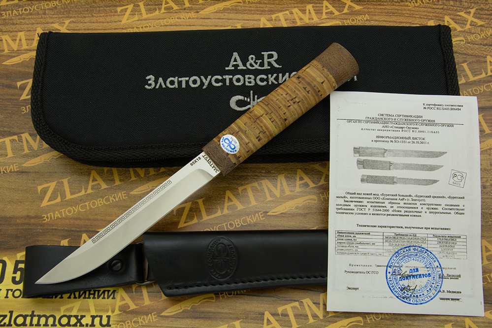 Нож Бурятский малый является ножом разделочным и не относится к гражданскому холодному оружию. Соответствует требованиям ГОСТ Р 51644-2000 «Ножи разделочные и шкуросъемные. Общие технические условия».