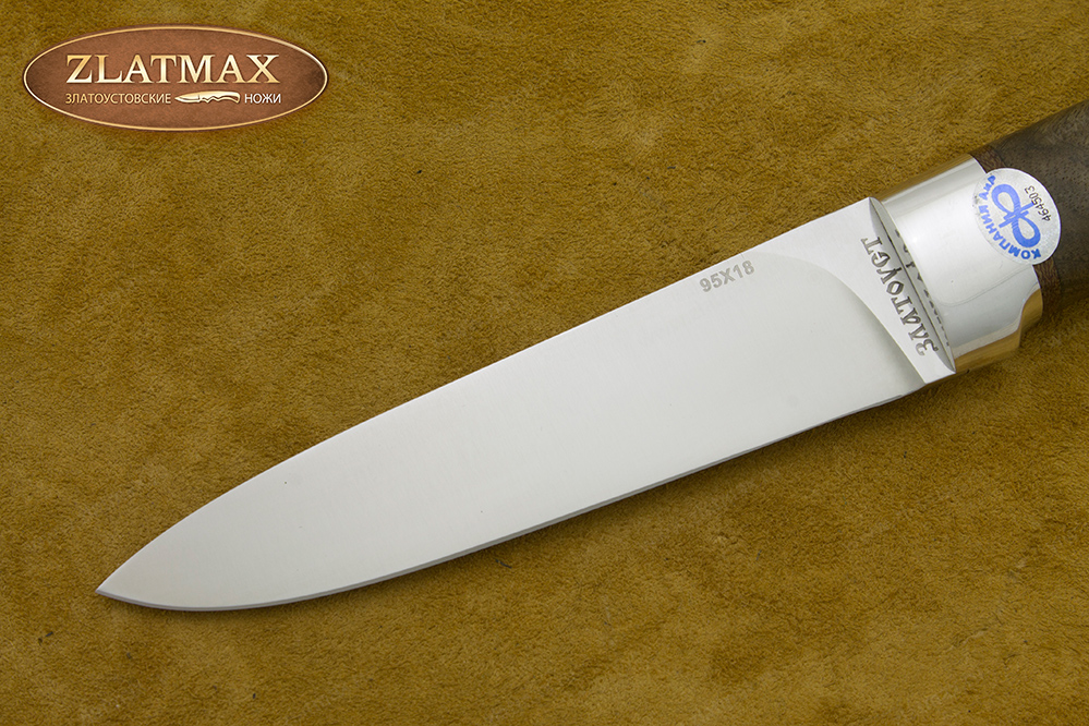 95Х18 - это без преувеличения лучшая сталь российского производства, а потому она пользуется огромной популярностью у отечественных и зарубежных компаний. При правильном изготовлении металл получает отличную твердость, гибкость и прочность. Ножи из этого материала служат, как правило, не один год. И при этом могут выглядеть так, как будто были сделаны только вчера. Но надо только стараться избегать попадания на лезвие соли и долгое воздействие влаги. Единственный минус – клинок из такой стали очень сложно заточить. Придется потратить много сил или даже воспользоваться специальными устройствами. Но зато хорошую заточку ножи держат достаточно долго.