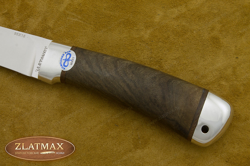 Такая рукоять будет легкой, долго прослужит своему обладателю, не будет скользить в руке. При низких температурах может оставаться холодной. Стоит помнить, что орех не любит большие нагрузки, поэтому таким ножом лучше не стучать по другим предметам и следить за тем, чтобы такой нож не падал с большой высоты.