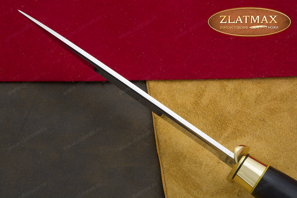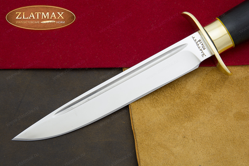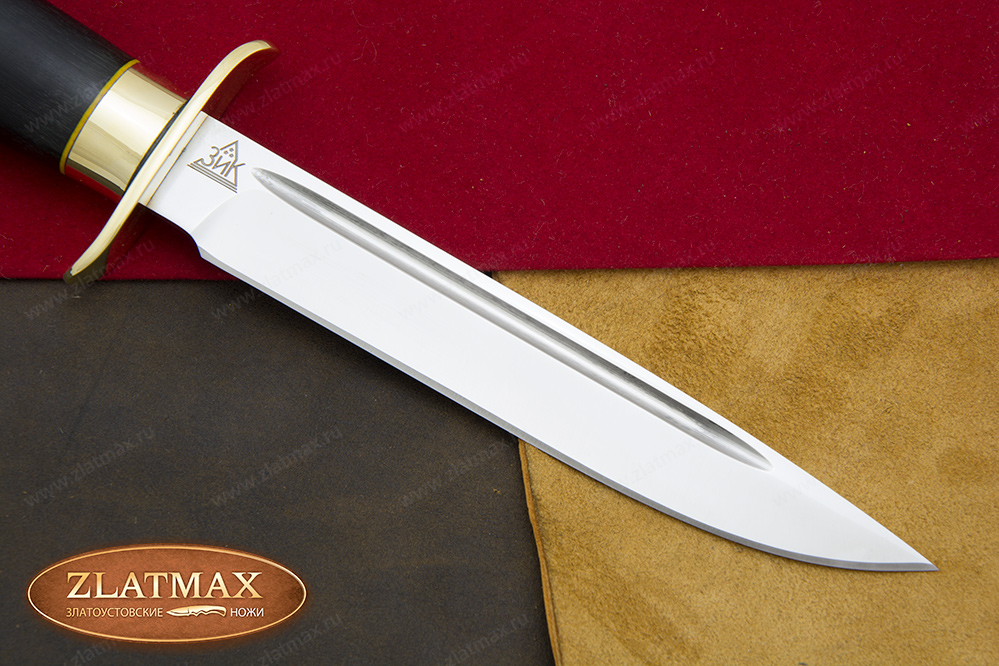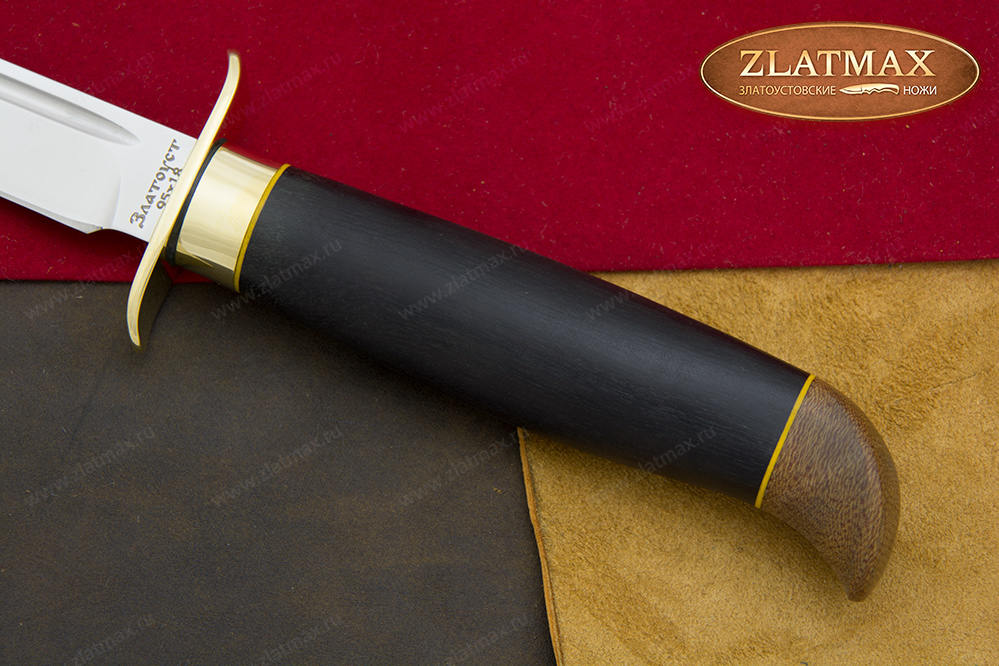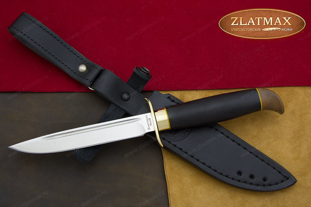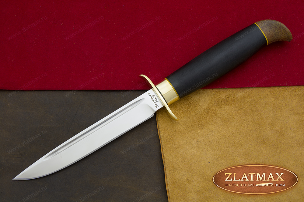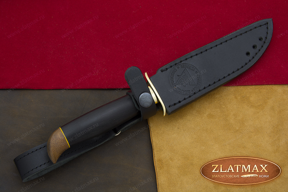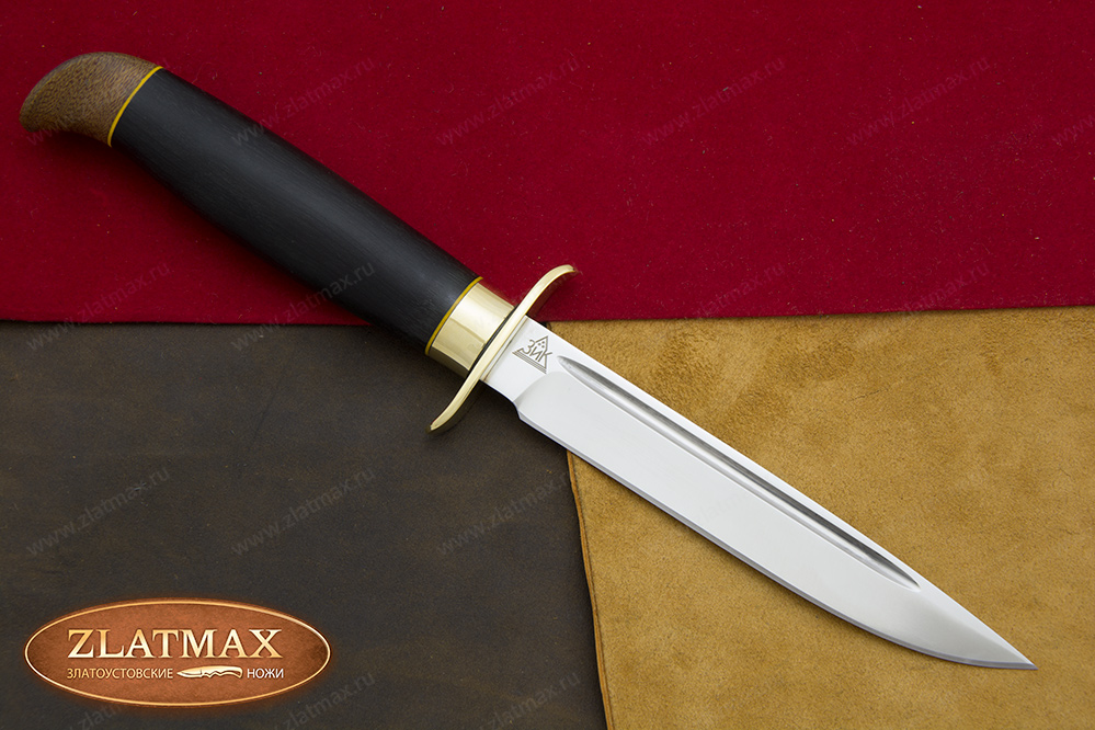 В нашем производстве используется мореный граб. Он повторяет структуру эбенового дерева, которое является ценной и красивой породой. Граб пропитан смолами, ему не страшно попадание влаги, он не растрескается со временем. Смотрится представительно и отлично подходит для подарочного варианта ножа.