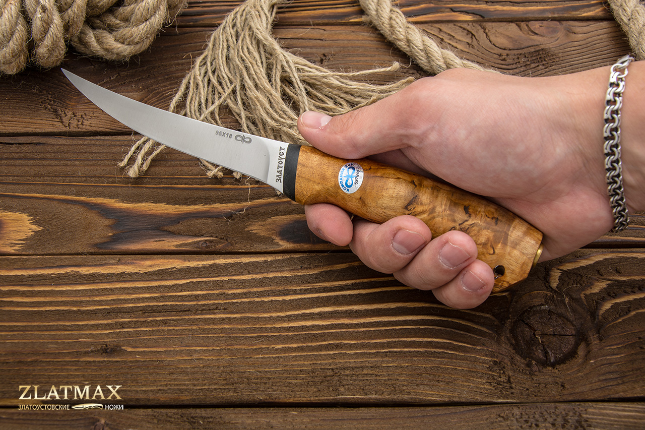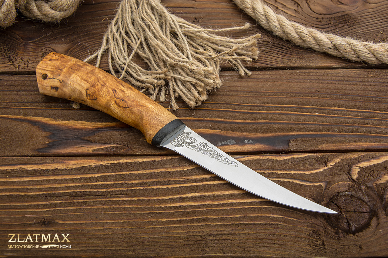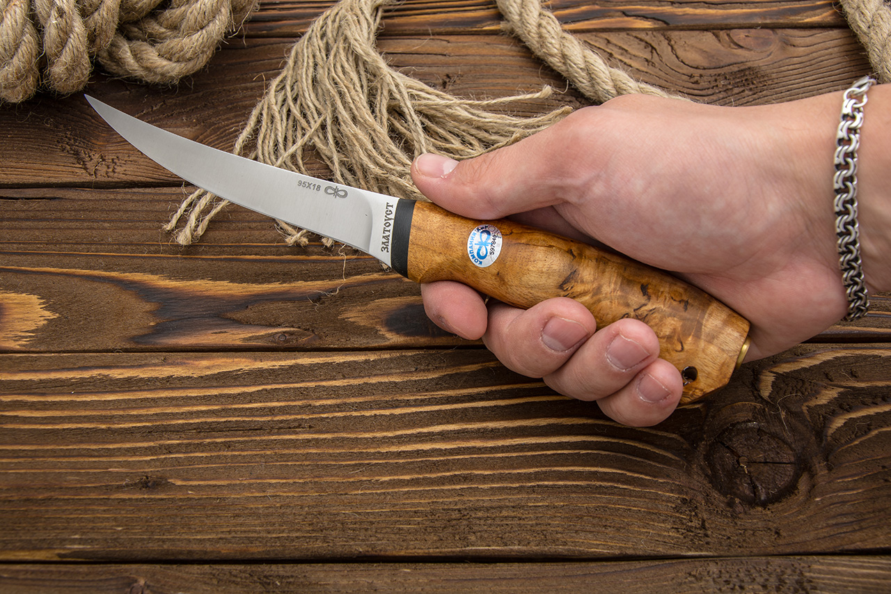Традиционный малый филейный инструмент, имеющий узкий длинный клинок, демонстрирует свои качества при первом же использовании. Название ножа произошло от английского «fish» - рыба, следовательно, любителям порыбачить он просто необходим. Пользуется спросом и среди хозяек, которые не прочь порадовать семью блюдами из свежей рыбы и угощениями на праздничном столе из нарезки копченной рыбы. Рукоять имеет упор для удобства использования, им легко очистить рыбу от чешуи и убрать все внутренности.