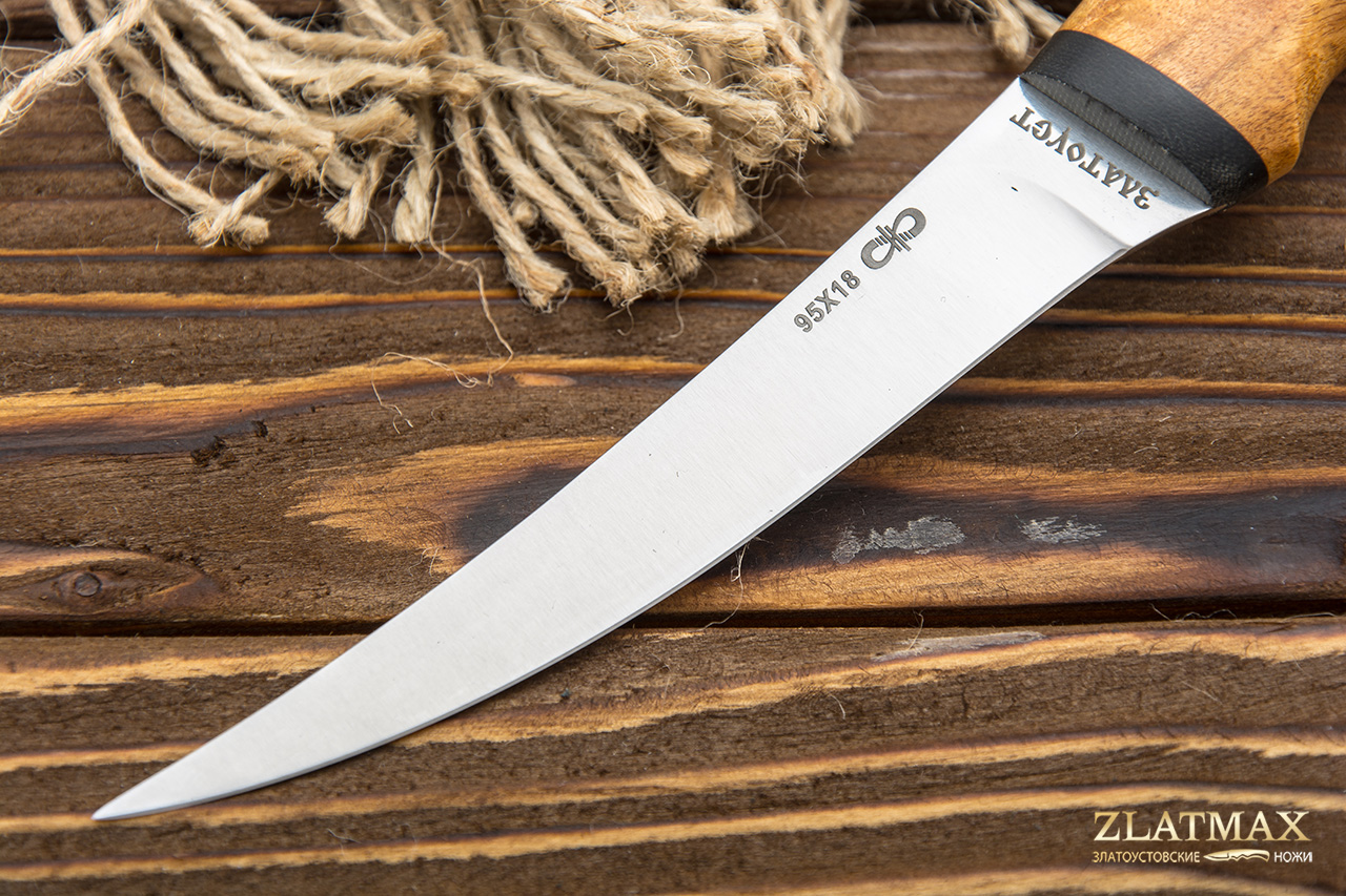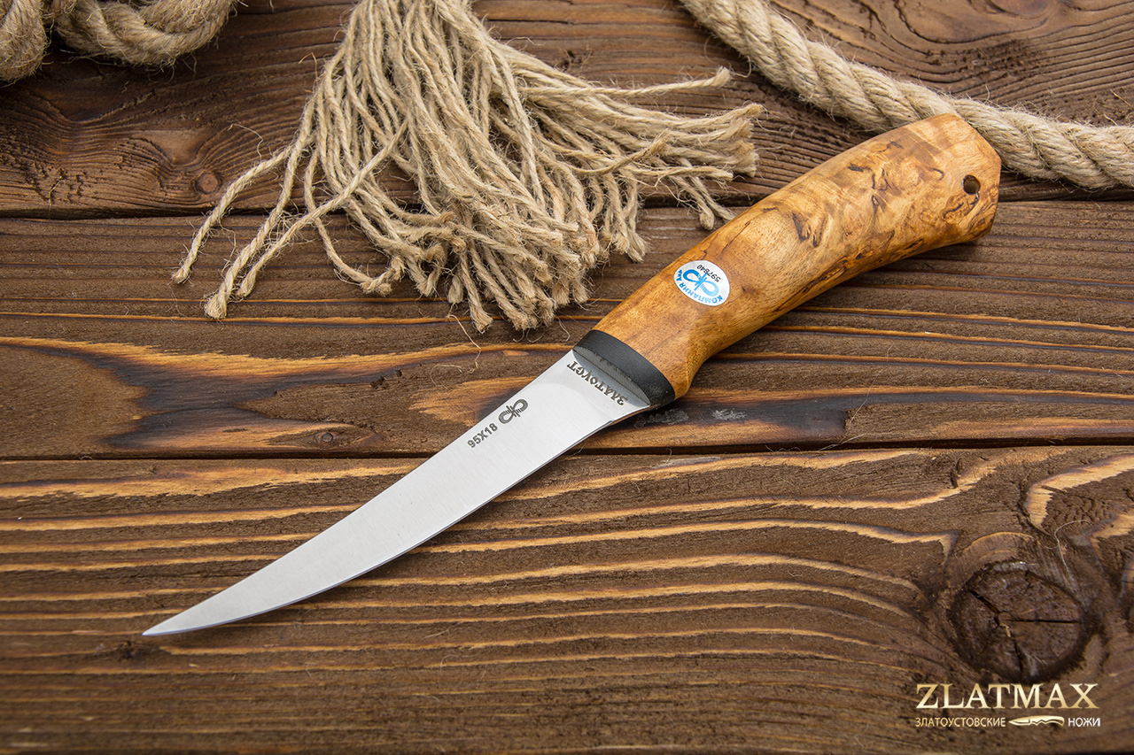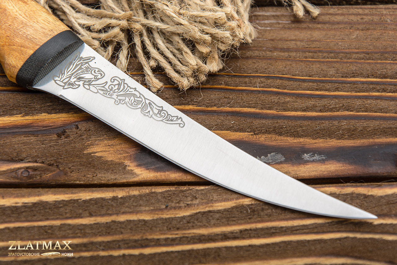 Традиционный малый филейный инструмент, имеющий узкий длинный клинок, демонстрирует свои качества при первом же использовании. Название ножа произошло от английского «fish» - рыба, следовательно, любителям порыбачить он просто необходим. Пользуется спросом и среди хозяек, которые не прочь порадовать семью блюдами из свежей рыбы и угощениями на праздничном столе из нарезки копченной рыбы. Рукоять имеет упор для удобства использования, им легко очистить рыбу от чешуи и убрать все внутренности.