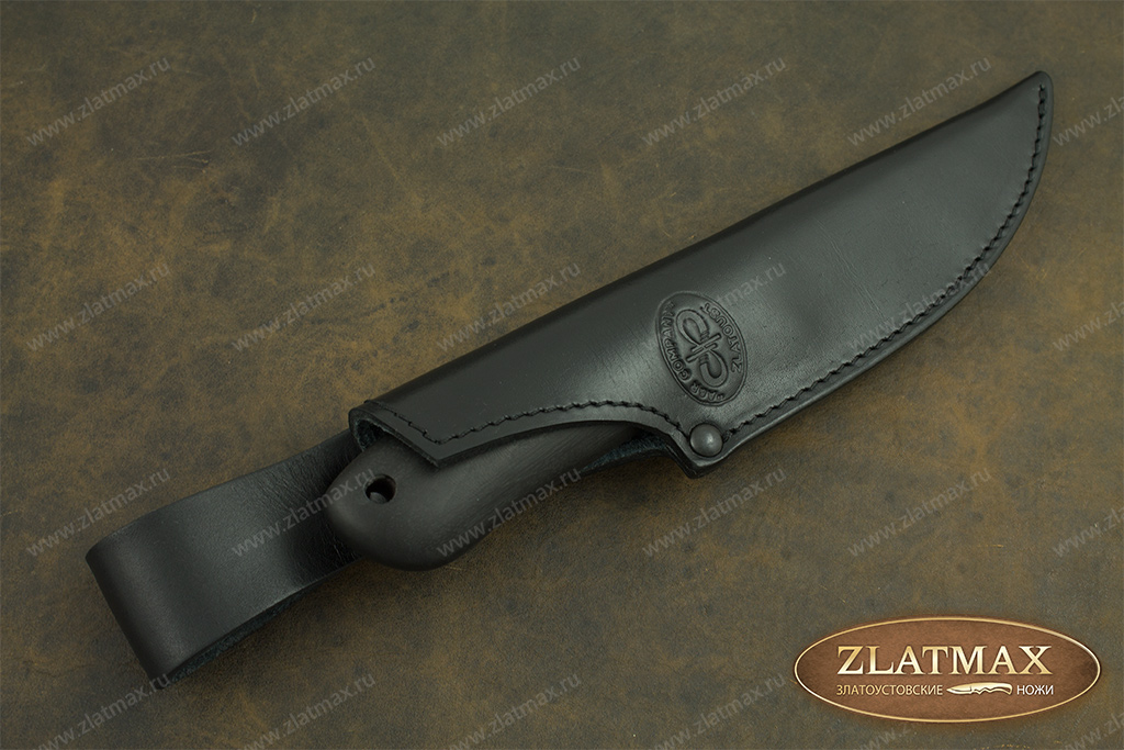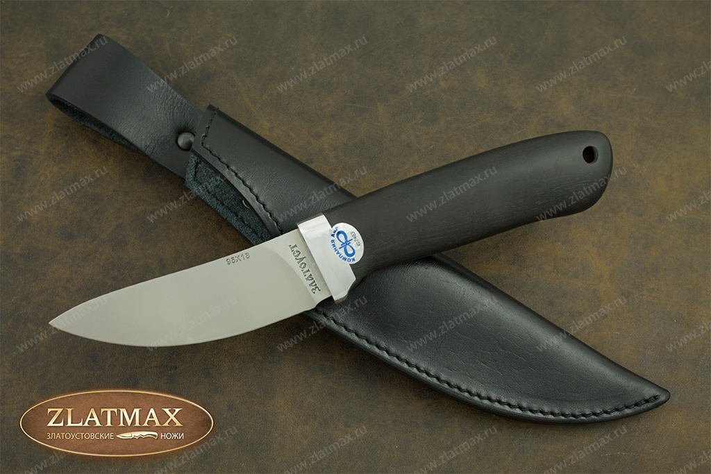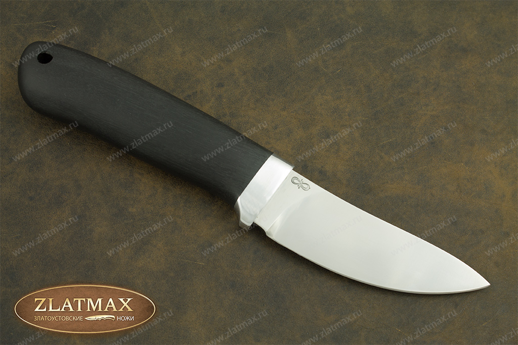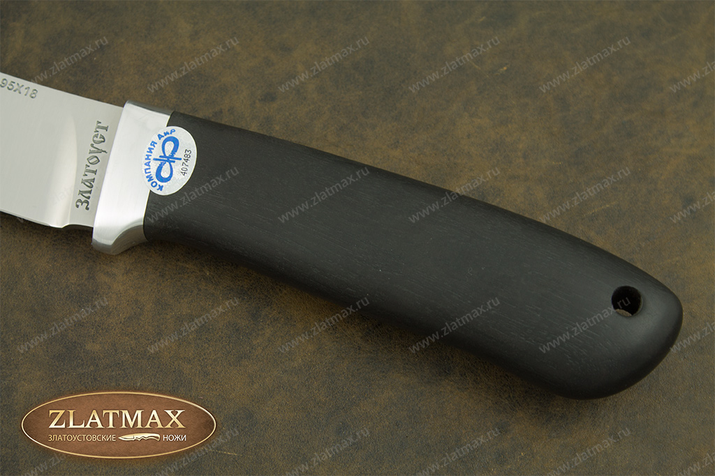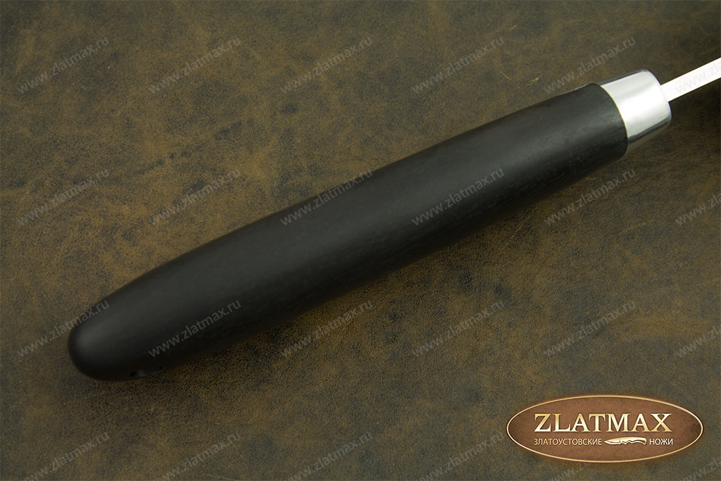 В нашем производстве используется мореный граб. Он повторяет структуру эбенового дерева, которое является ценной и красивой породой. Граб пропитан смолами, ему не страшно попадание влаги, он не растрескается со временем. Смотрится представительно и отлично подходит для подарочного варианта ножа.