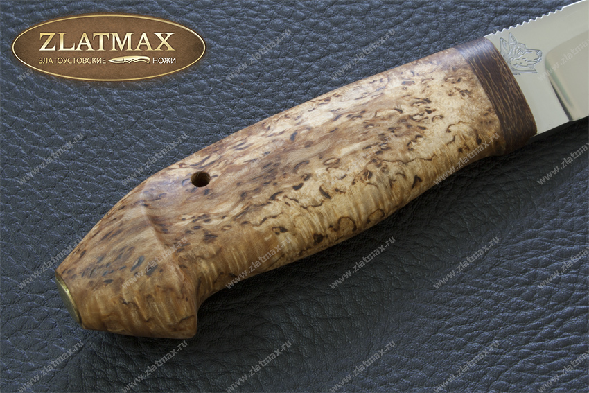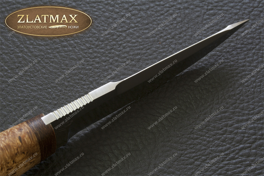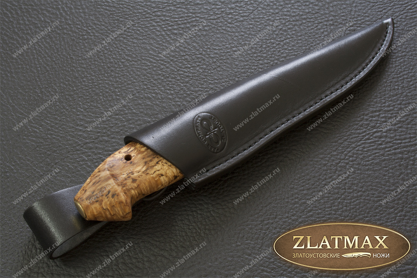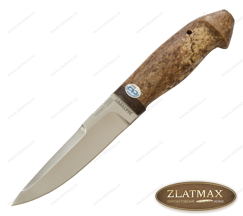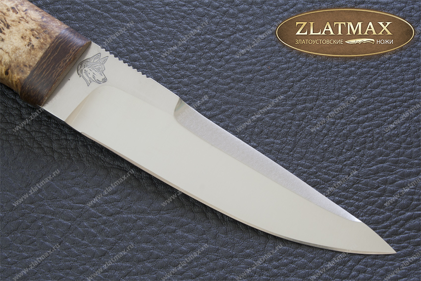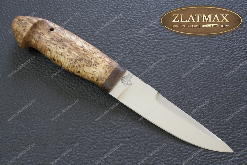 Универсальный нож легкого веса остается прочным и надежным. Выполнен в скандинавском типе орудия с приспущенным обушком. Не смотря на легкость клинка, он придает уверенность тому, кто его использует, благодаря своей мощности, толщине пяты 5 мм. и ширины фальшлезвия. Имеется упор для большого пальца и насечка на обухе. Это позволит с легкостью разделывать мясо, в том числе со всеми костями и хрящиками. Оптимально сбалансирован для общего удобства и прочно закрепляется в руках, даже если Вы работаете в рукавицах.