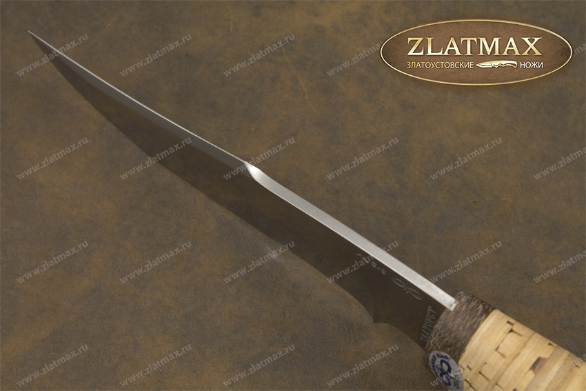 Универсальный нож «Хазар» довольно прочный, имеет среднюю величину и клинок хищного вида, что демонстрируется взгляду сразу же. Вид, как у восточного ятагана с вогнутыми спусками с середины клинка. Он обладает хорошими режущими способностями, в чем ему помогает оптимальная толщина обуха в 3 мм. и угол двусторонней заточки в 60 градусов фальшлезвия. Оно пригодится, чтобы рубить кости и хрящики. Уверенно держится в руках пользователя, а вырез для указательного пальца на пяте придает максимальное удобство. Оптимальный вариант для лесных работ.