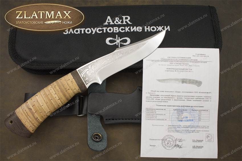 Нож Хазар является ножом разделочным и не относится к гражданскому холодному оружию. Соответствует требованиям ГОСТ Р 51644-2000 «Ножи разделочные и шкуросъемные. Общие технические условия».