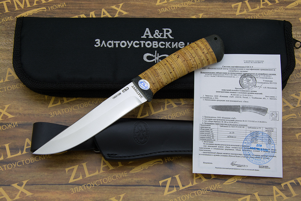 Нож Лиса является ножом туристическим и не относится к холодному оружию. Соответствует требованиям ГОСТ Р 51501-99 «Ножи туристические и специальные спортивные. Общие технические условия».