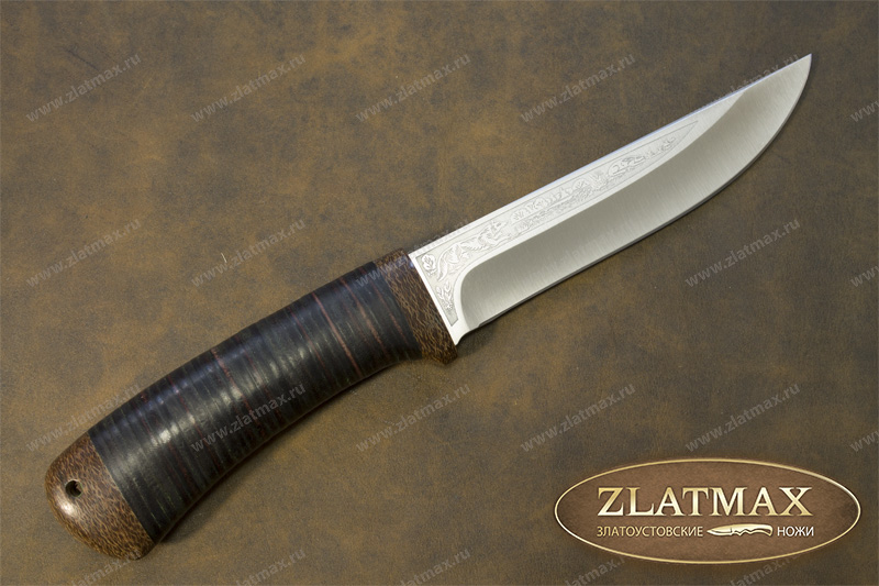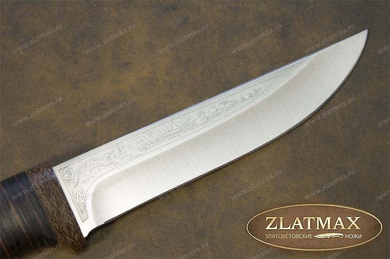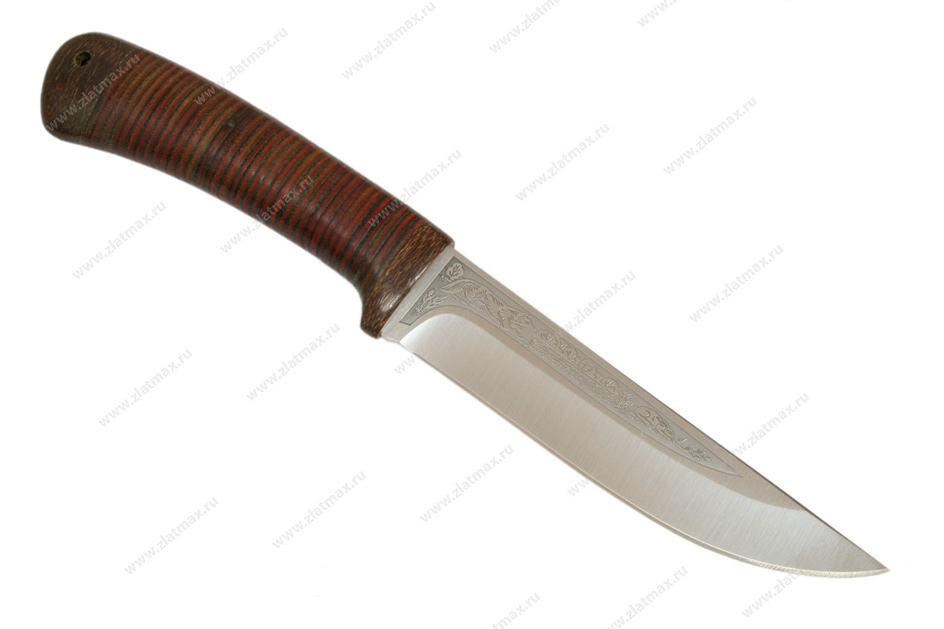 Сравнительно небольшой, универсальный, легкий и прочный нож с клинком, имеющим чуть приспущенный к острию обушок. Спуски в виде линзы на большую часть ширины клинка образуют тонкое, изумительно режущее лезвие. Толщина обуха в 2,6 мм позволяет оставить приличную голомень, что придает ему дополнительную прочность. Рукоятка имеет эргономичную форму, что позволяет пользоваться ножом человеку с любым размером ладони. Гарда умеренной величины защищает пальцы при резе. Монтаж рукояти сквозной, неразборный. На навершии рукояти имеется отверстие под темляк. Великолепное решение для тех, кто любит проводить время на природе и вдали от городской суеты. Пользуется неизменной популярностью у покупателей.