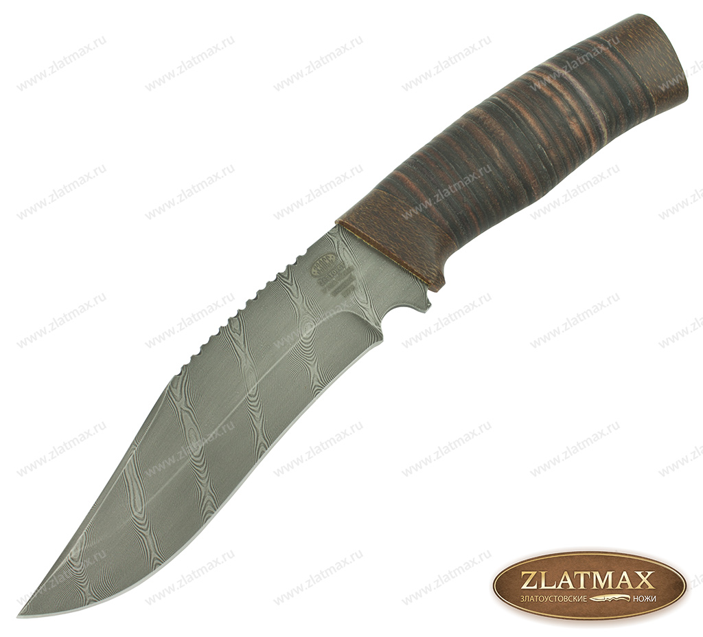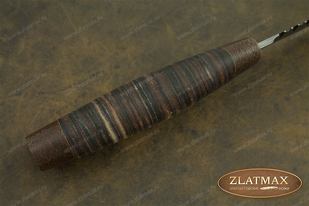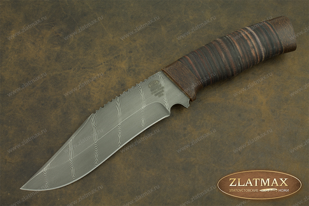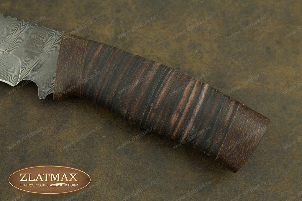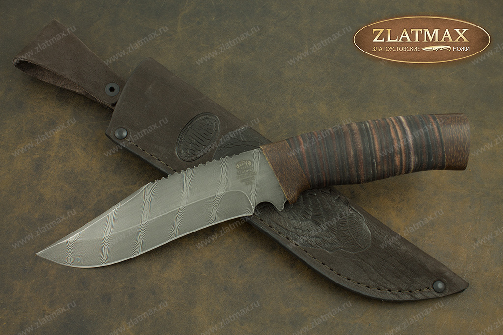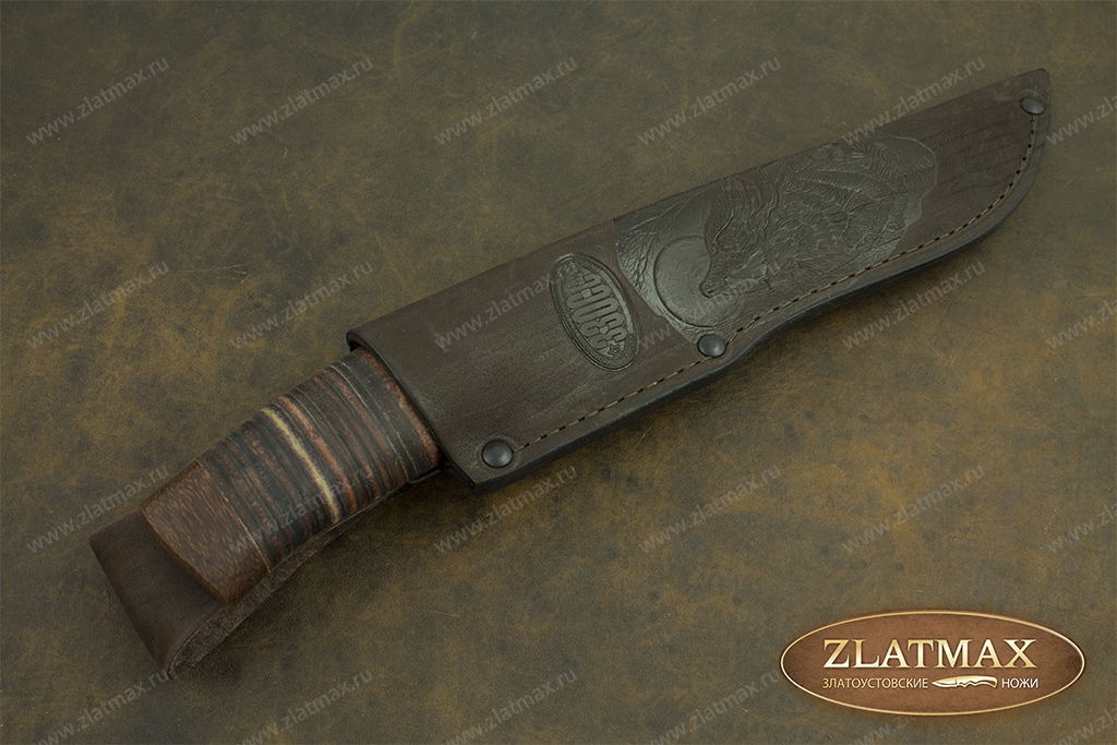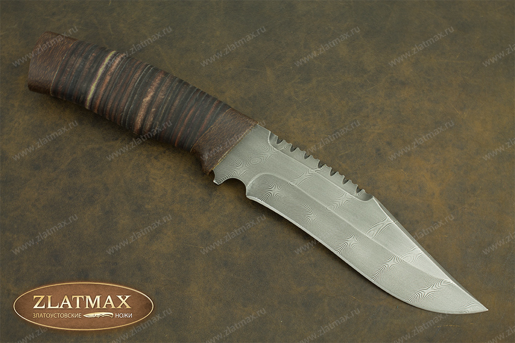 Наборная кожа - представляет из себя склеенные кожаные полоски. Из них получаются приятные на ощупь, теплые, удобные в руке рукояти для ножей. Такое изделие будет теплым даже при минусовой температуре, однако в условиях высокой влажности кожа мокнет, потребуется время, чтобы ее высушить.